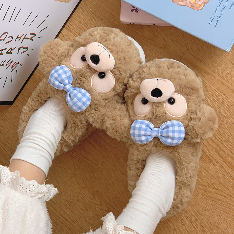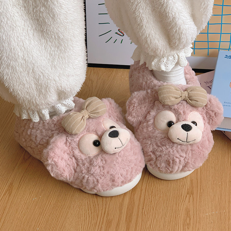 踩屎感可爱小熊棉拖鞋女款冬季外穿防滑厚底居家包跟保暖棉鞋秋千