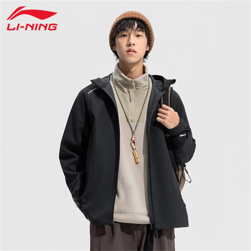 李宁运动冲锋衣男春秋新款CF溯万龙甲黑龘防泼水户外风衣夹克外套