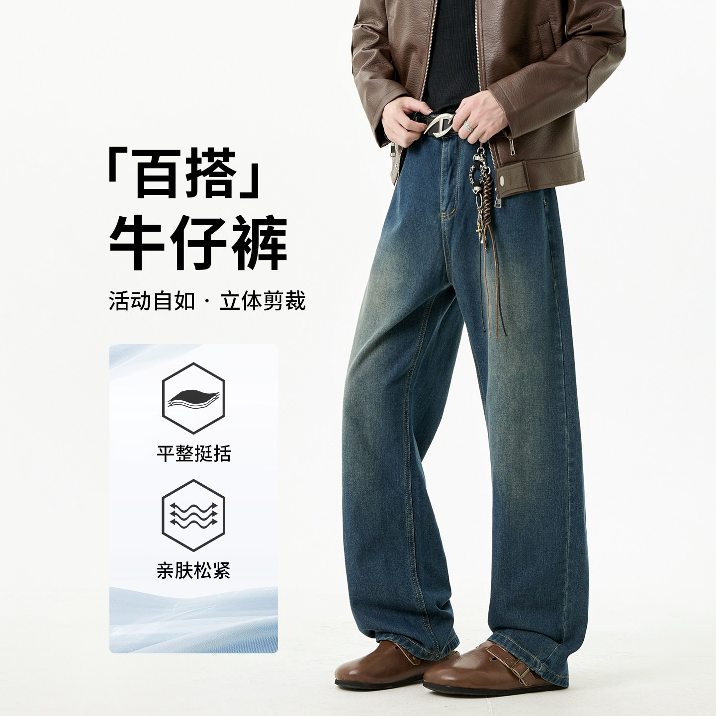 复古做旧直筒牛仔裤男士2026新款春秋阔腿青少年休闲裤子男款潮牌
