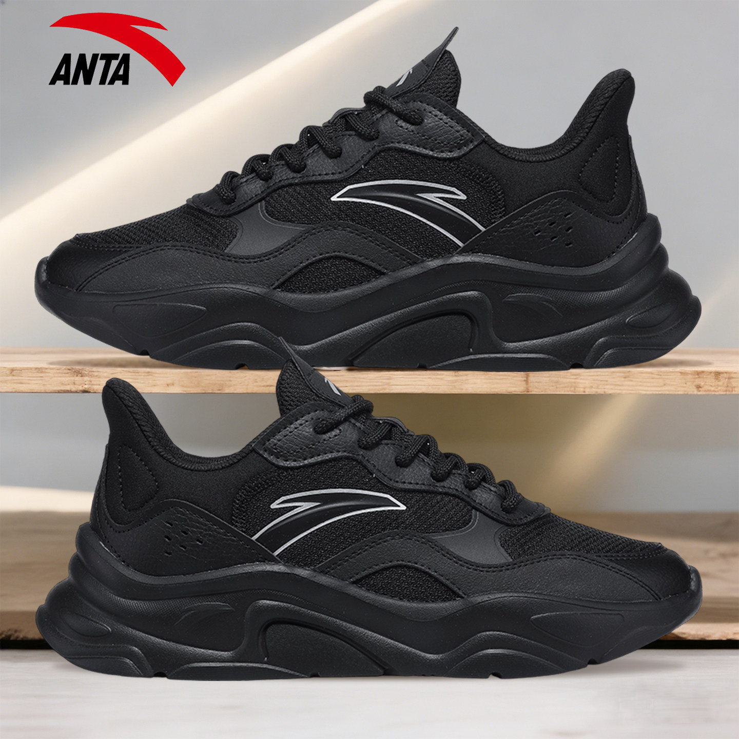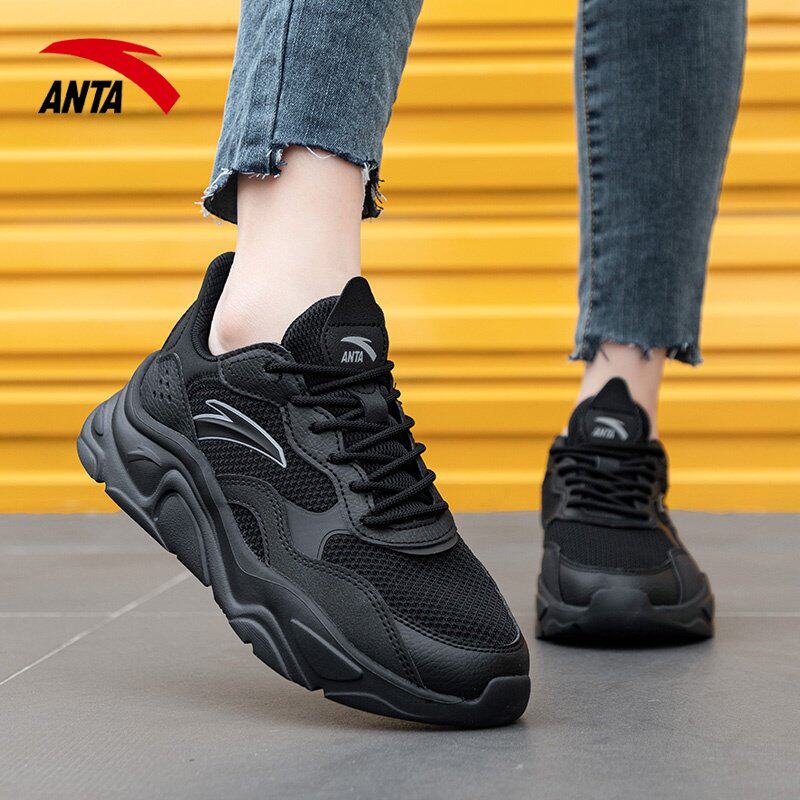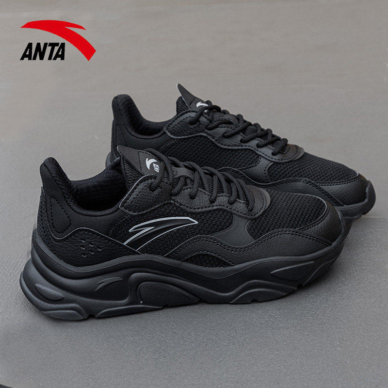 安踏女鞋厚底网面鞋女老爹鞋女款全黑鞋子官方旗舰店正品运动鞋女