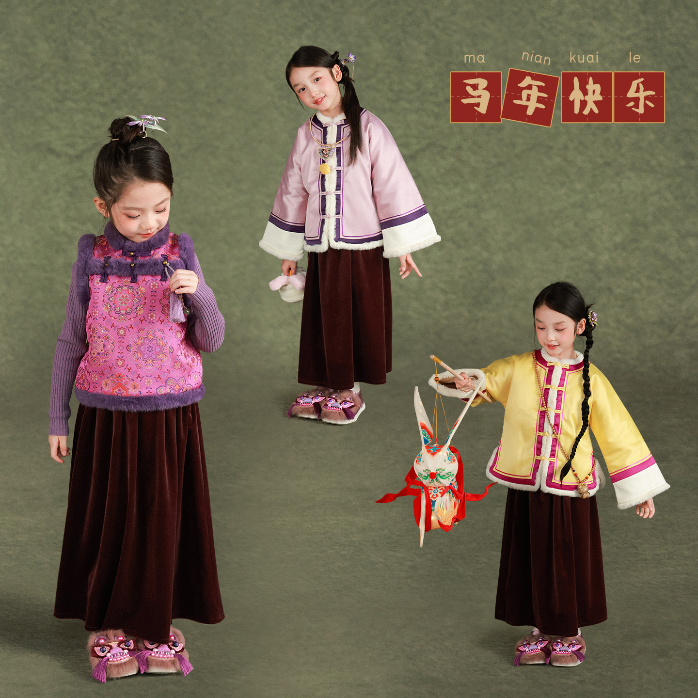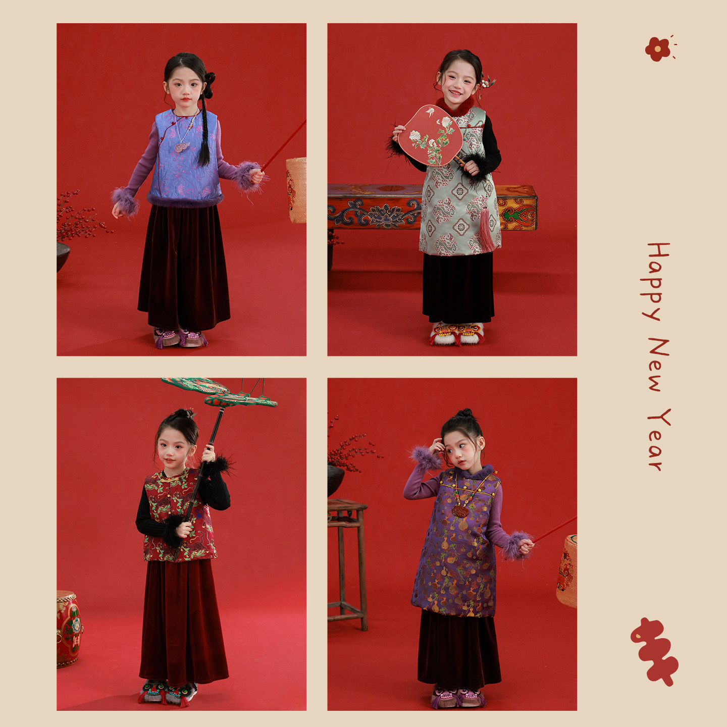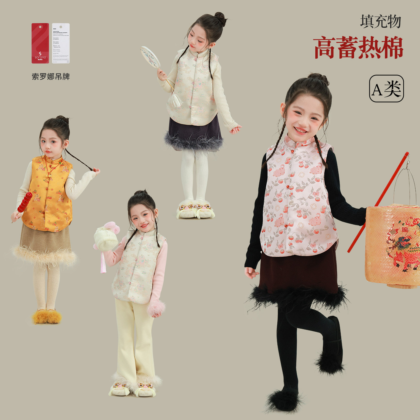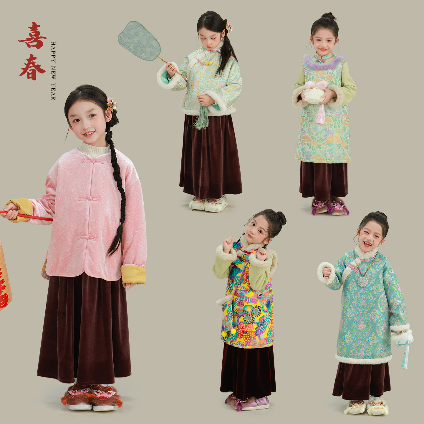 大耳象女童旗袍马甲丝绒半裙冬款宝儿拜年新中式织锦加厚保暖上衣