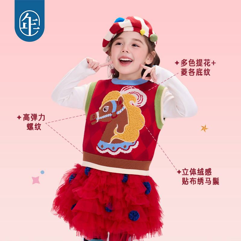 年衣童装儿童针织马甲秋冬新款男女童上衣新中式针织衫毛衫背心棉