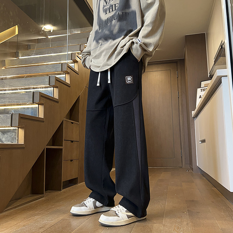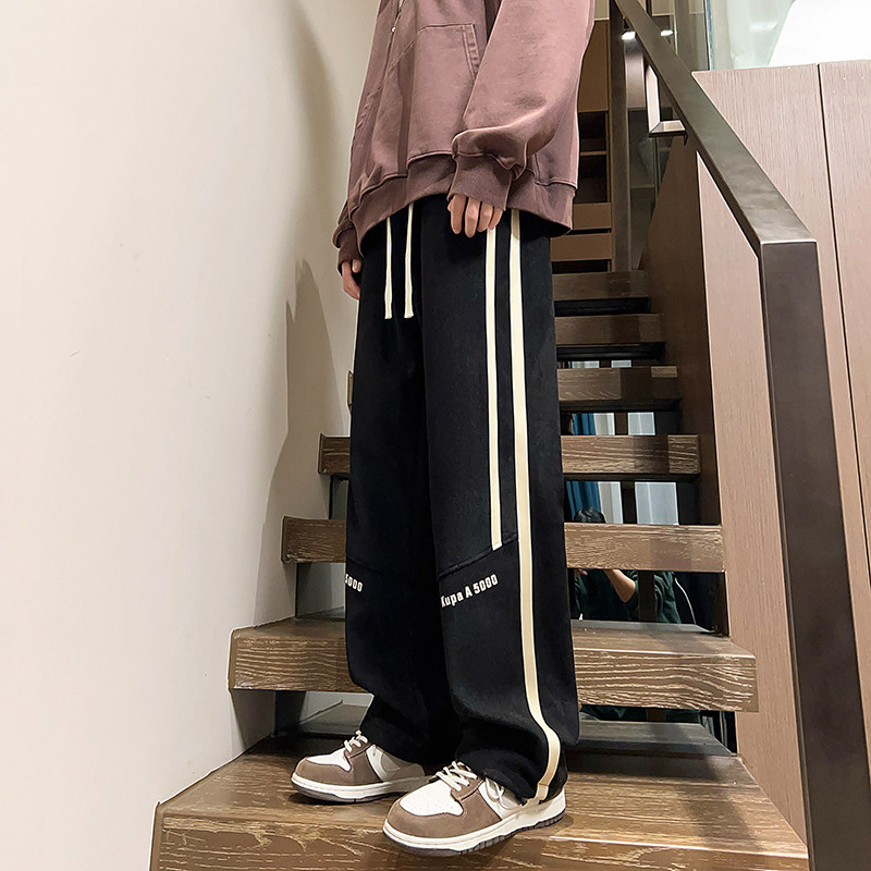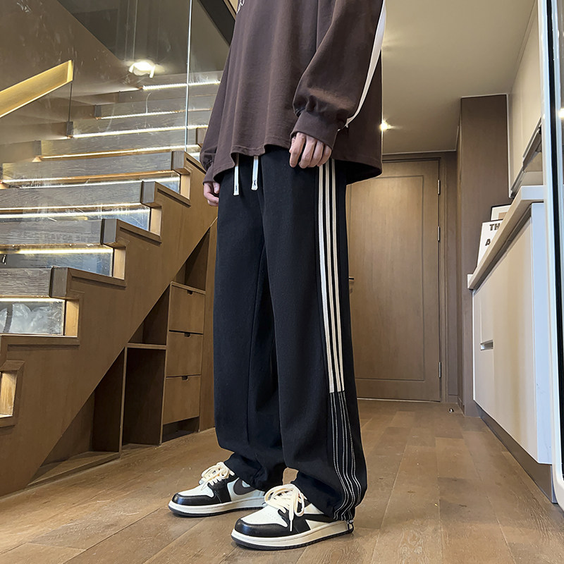 春秋季休闲长裤子男孩学生帅气青少年大童冬装加绒直筒运动卫裤厚