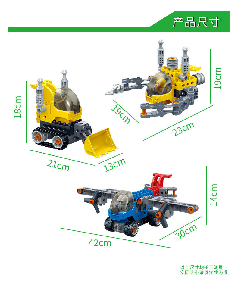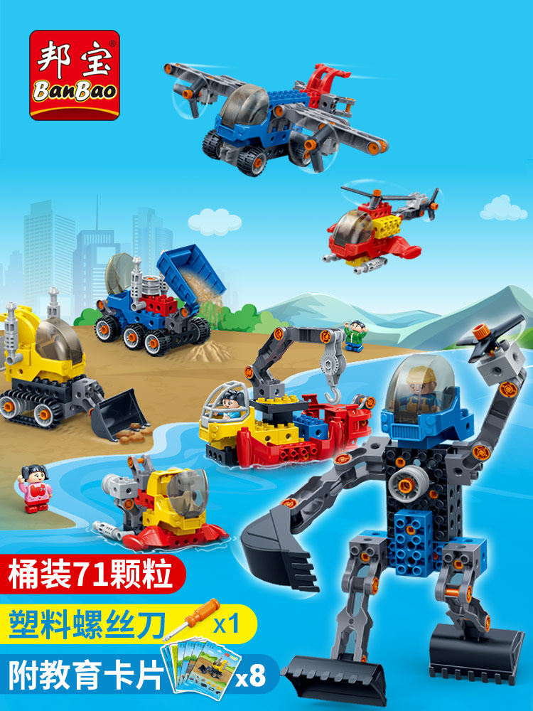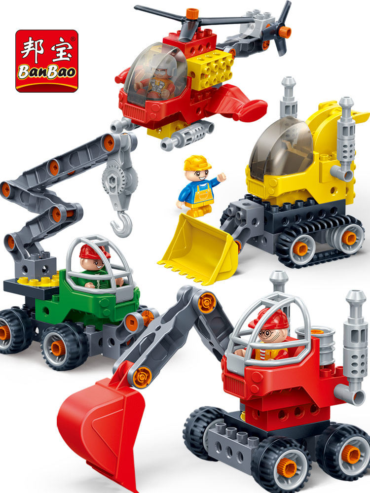 邦宝大颗粒6539拧螺丝工程车积木儿童拼插玩具车挖掘机吊车翻斗车
