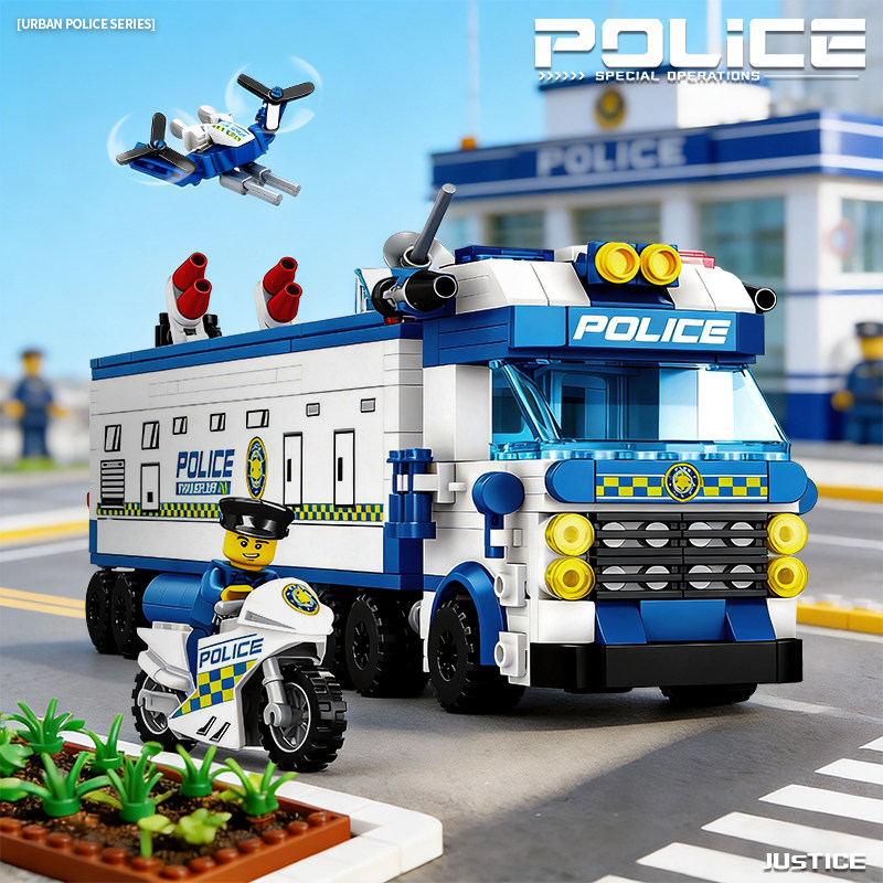 城市警察指挥车积木摩托车拼装男孩儿童玩具6岁以上2026年新款