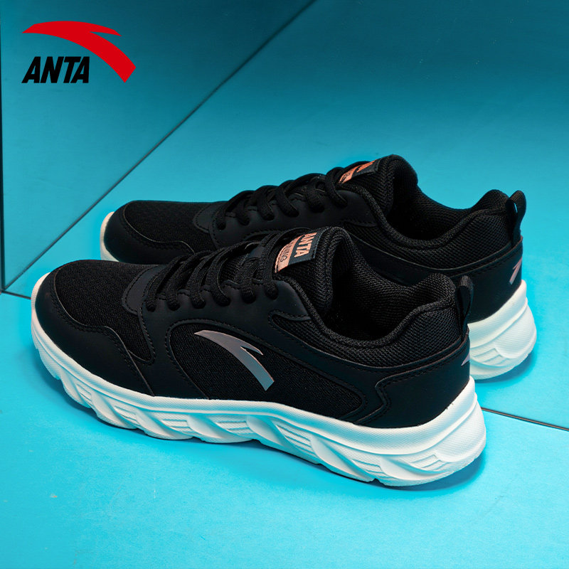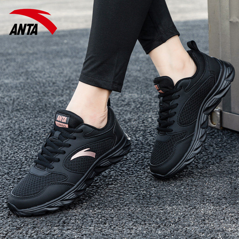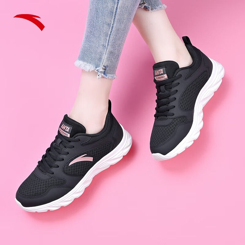 安踏运动鞋女鞋网面透气鞋子春季网鞋黑色轻便跑鞋休闲鞋跑步鞋女