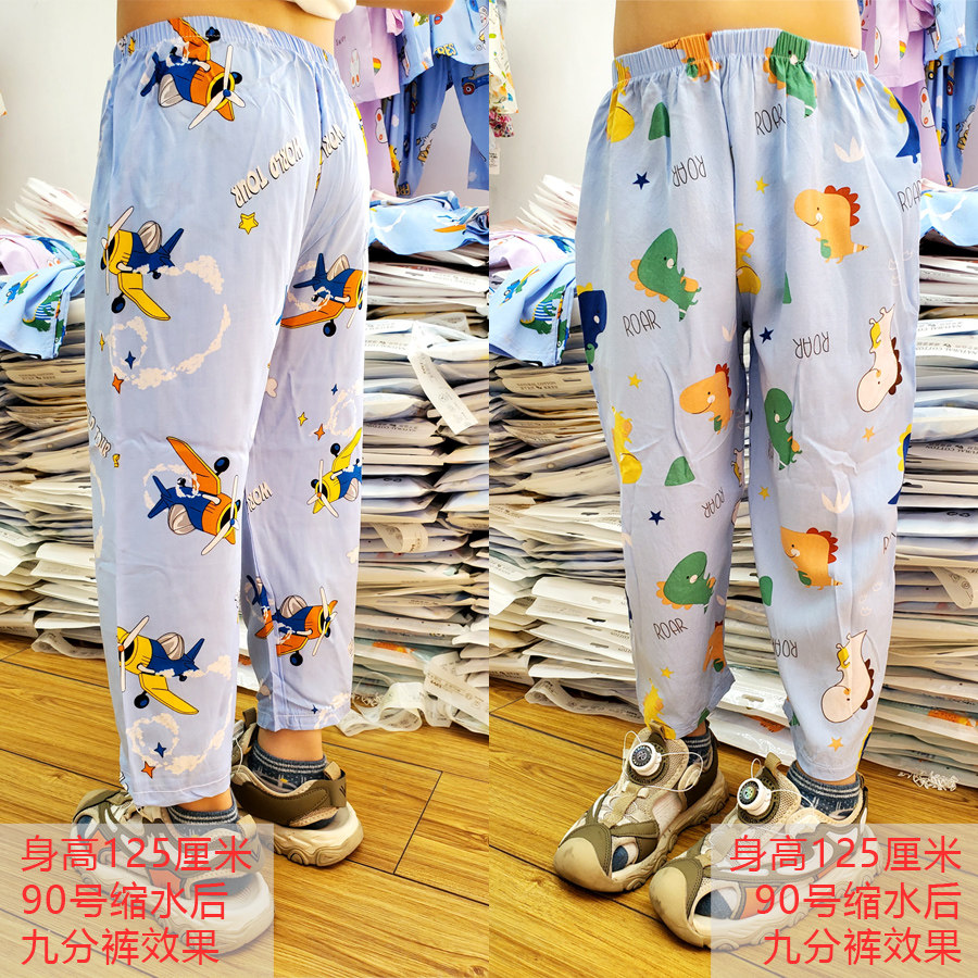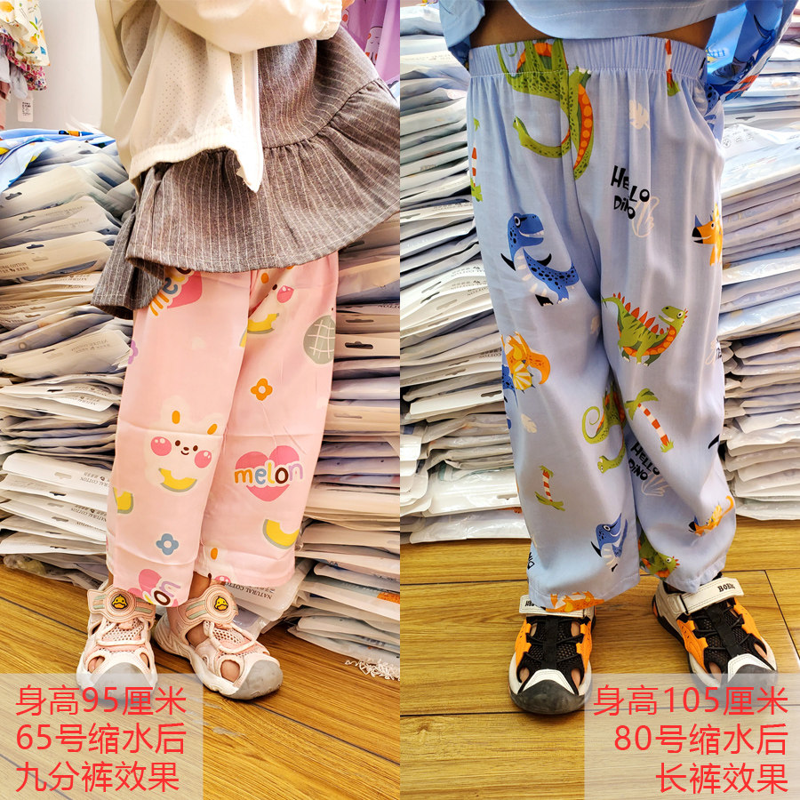 绵绸裤子儿童男女小中大童小孩防蚊裤人造棉空调服2026夏季七分裤