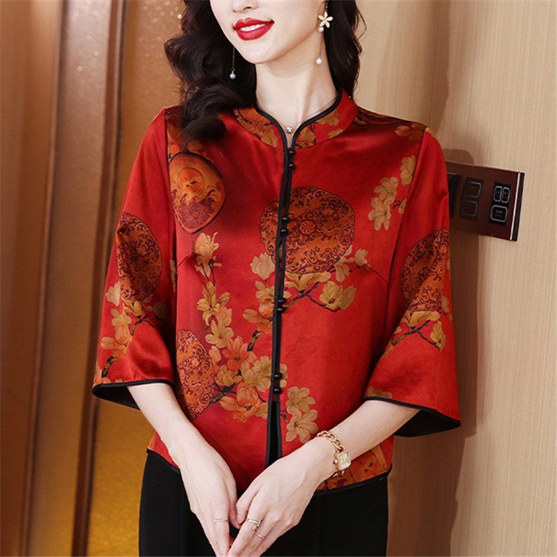 真丝香云纱高端女装国风上衣真品清仓断码捡漏妈妈中式桑蚕丝衬衫