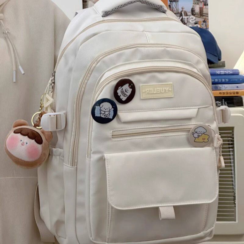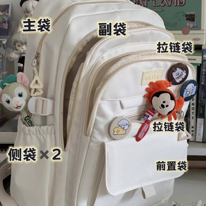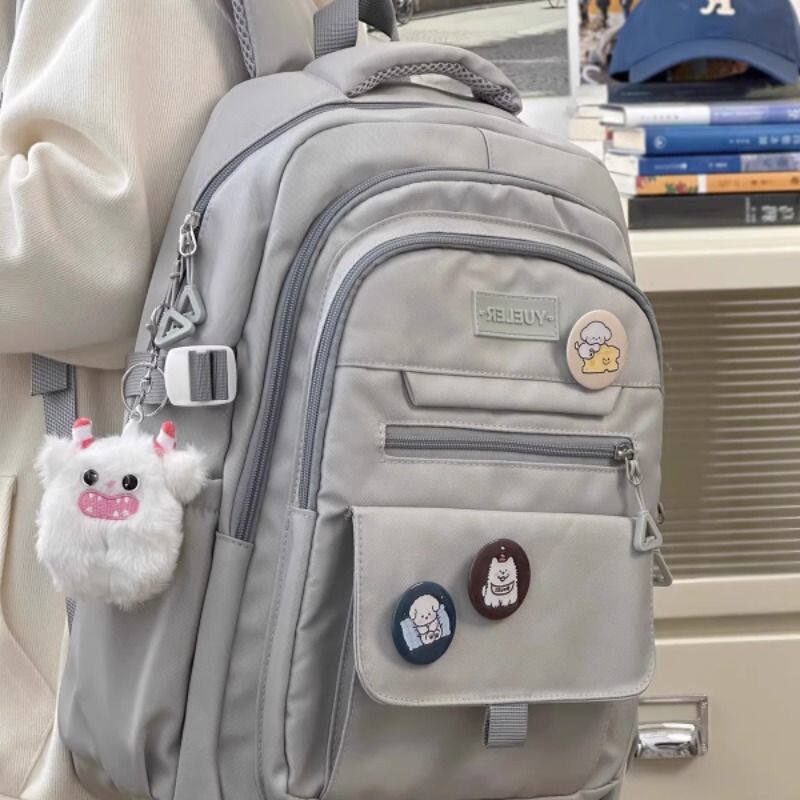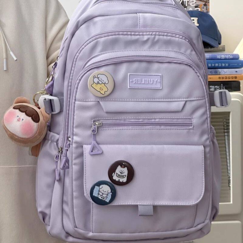 简约百搭大学生书包女ins初中高中生双肩包男背包紫色灰色黑色