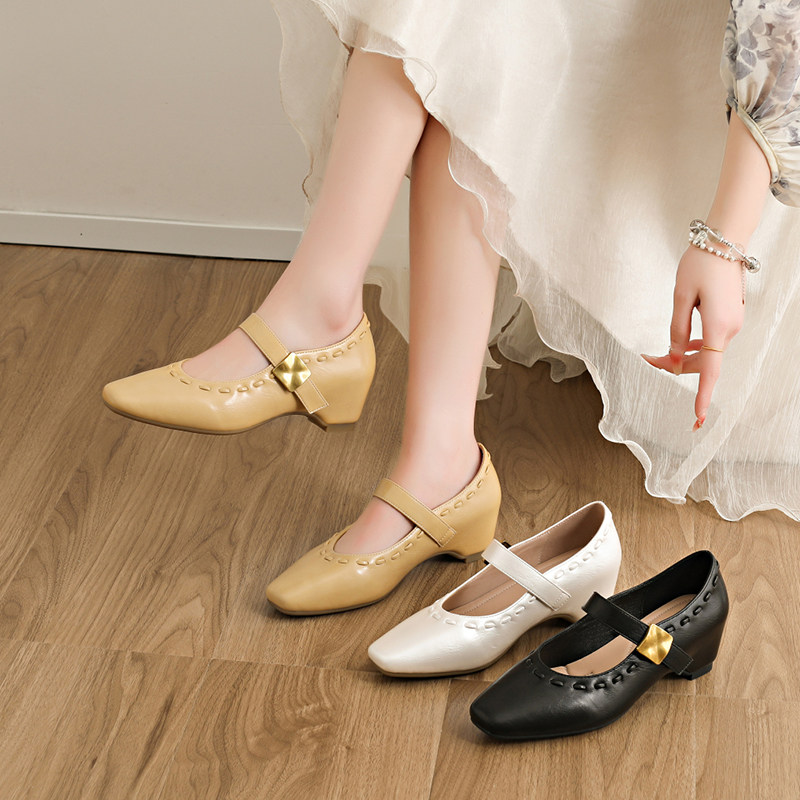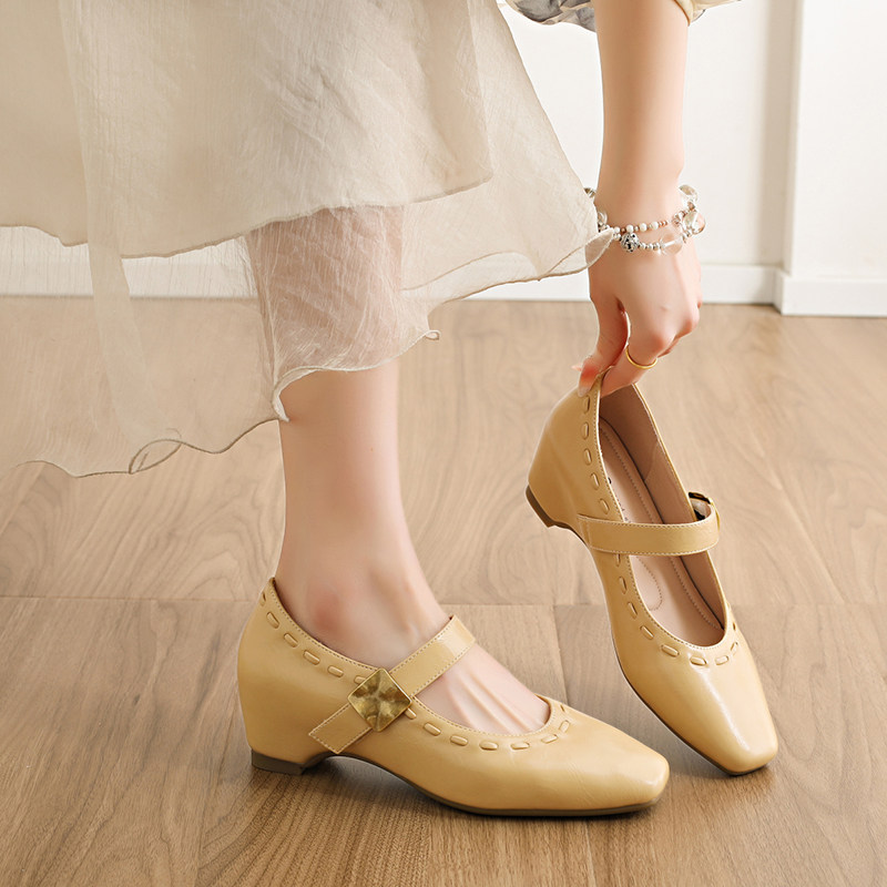 311线报网描述:玛丽珍鞋内增高配裙子方头温柔气质浅口单鞋