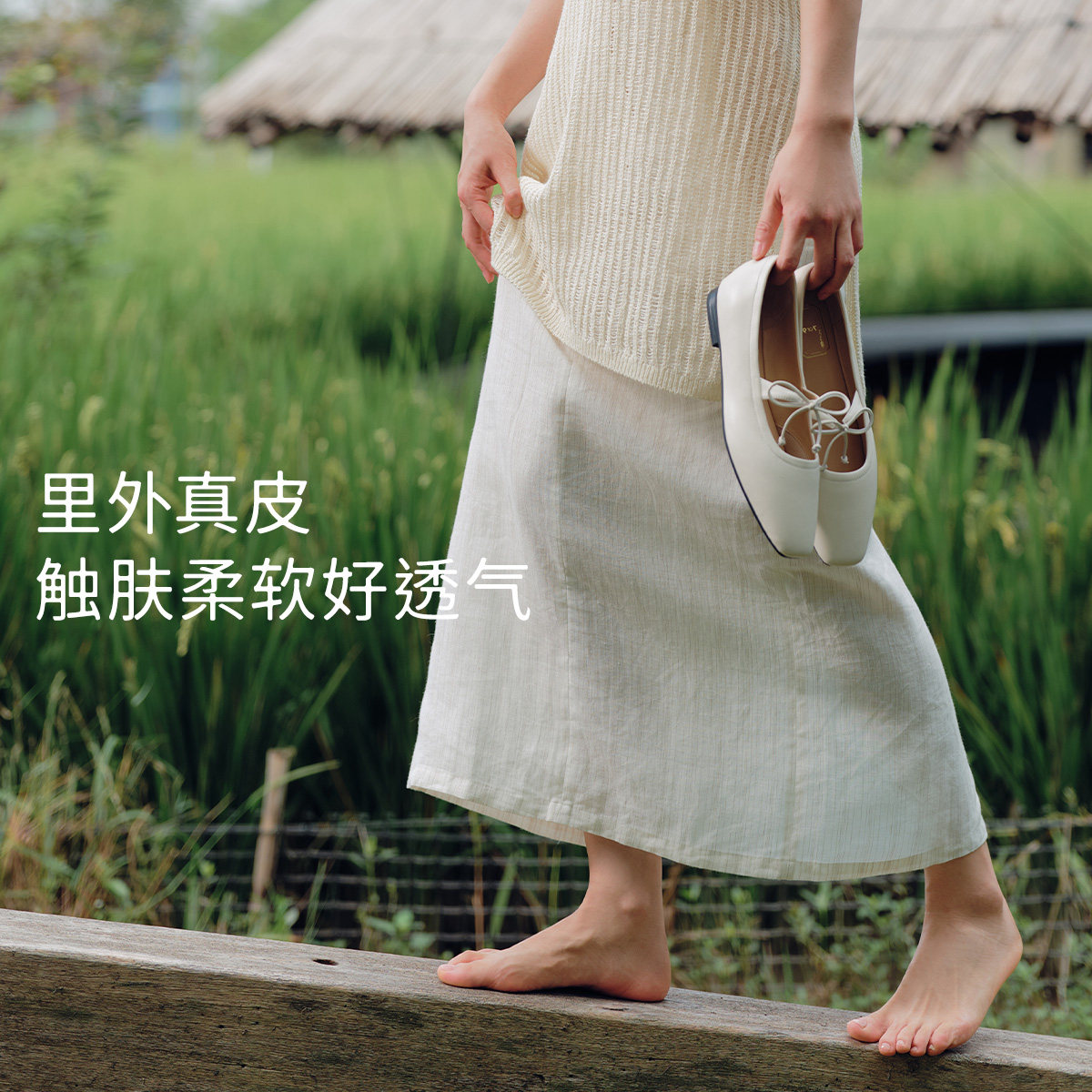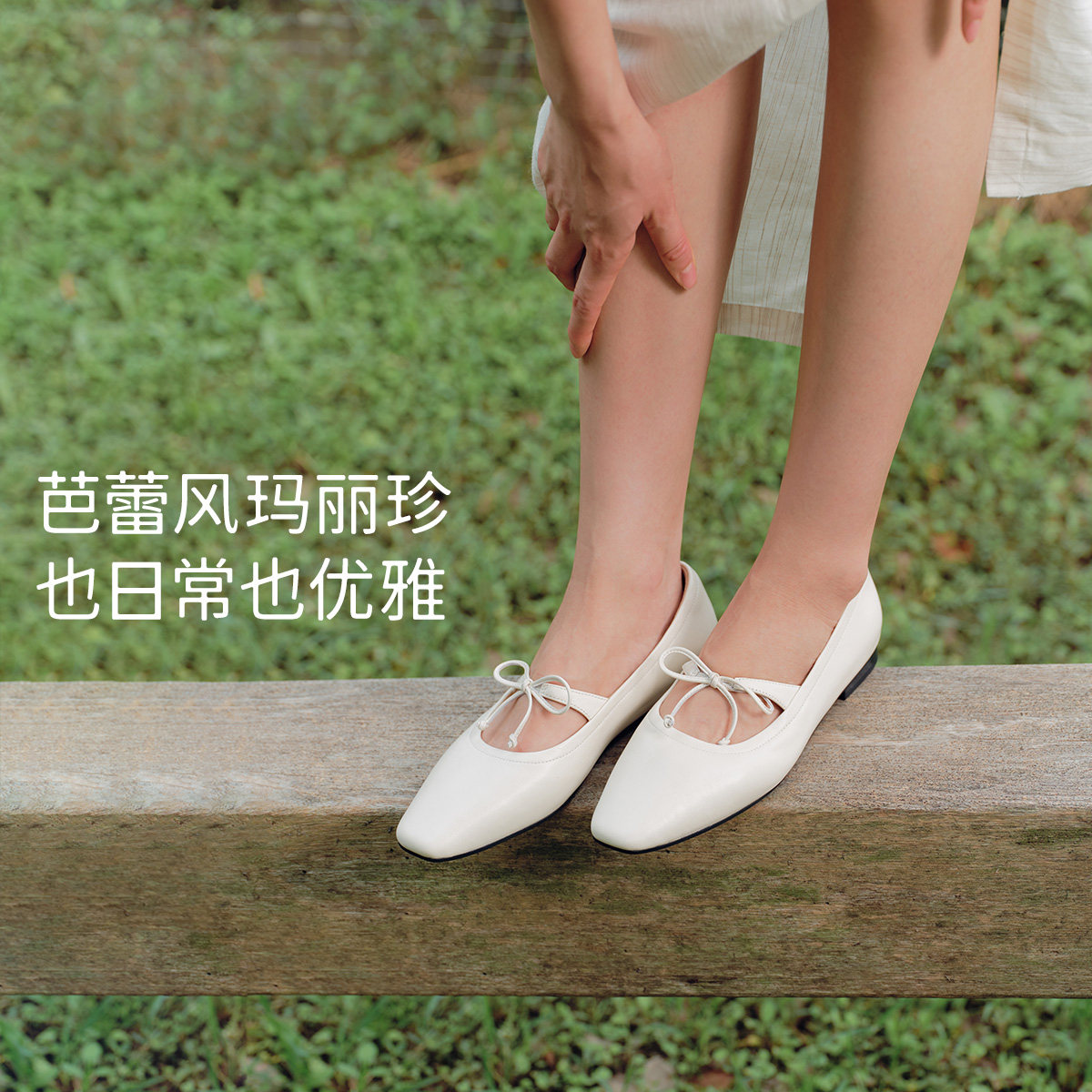 7or9玛丽珍鞋女鞋平底鞋春夏款羊皮蝴蝶结芭蕾风通勤单鞋白巧麻薯