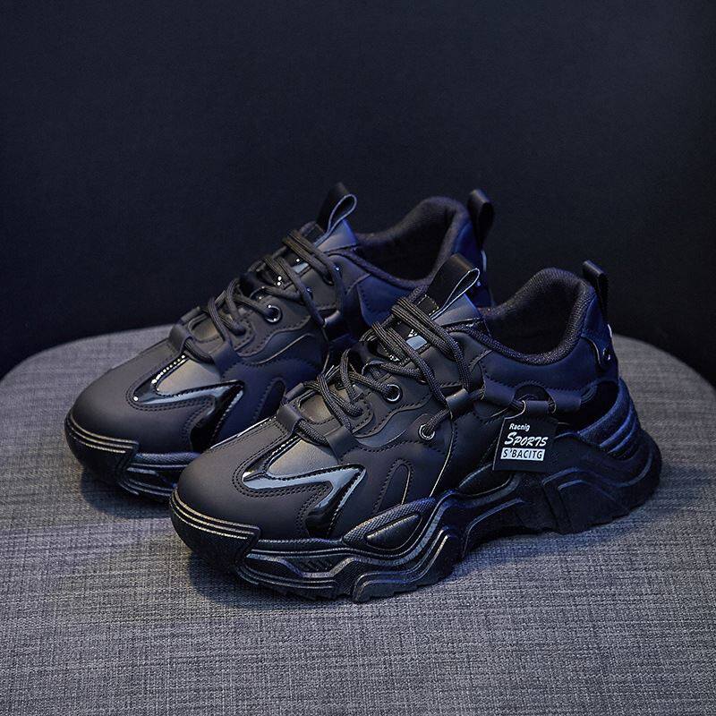 黑色老爹鞋女款久站不累脚运动鞋春季软底防滑防水厨房上班工作鞋