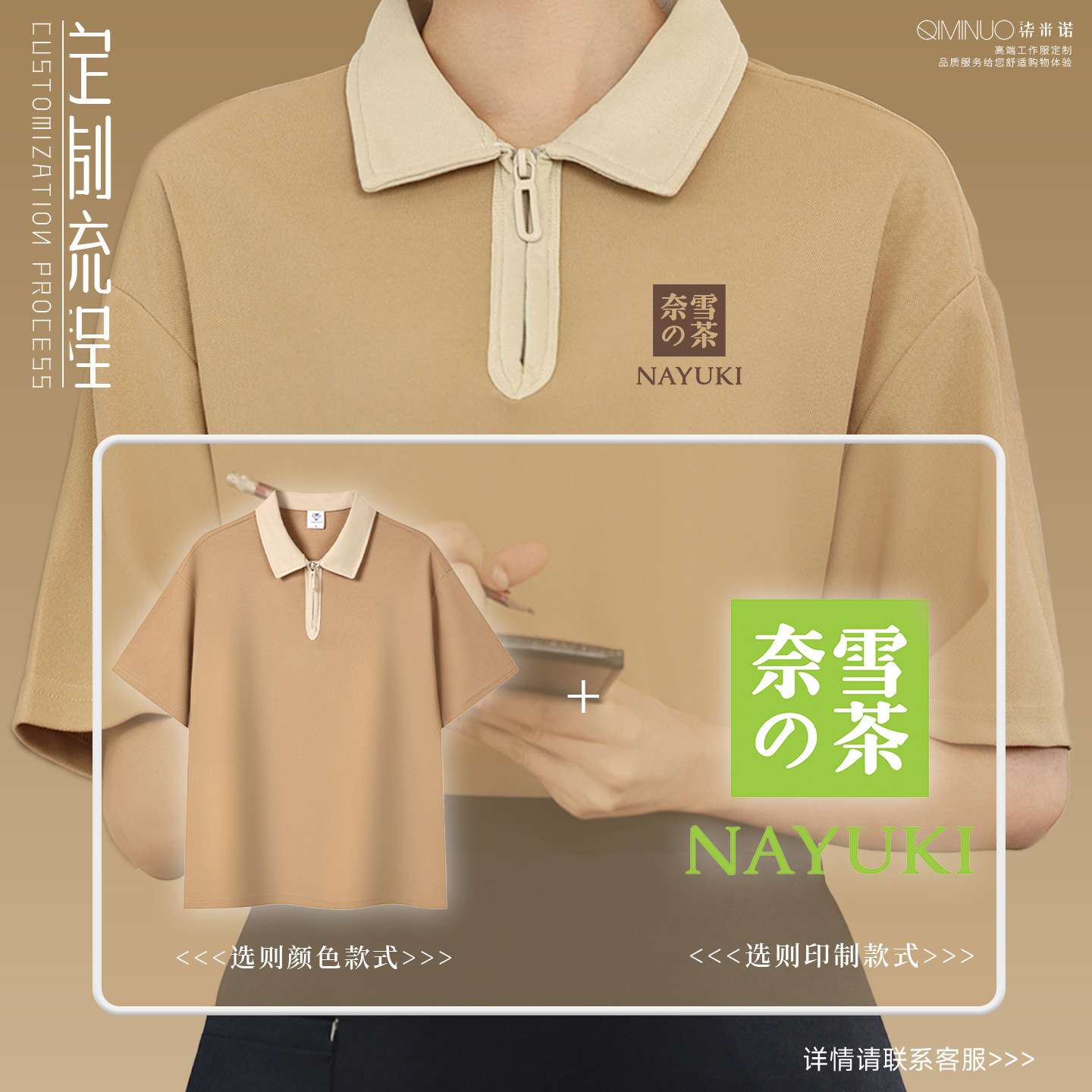餐饮服务员工作服T恤定制logo咖啡奶茶夏短袖半拉链POLO衫印店名