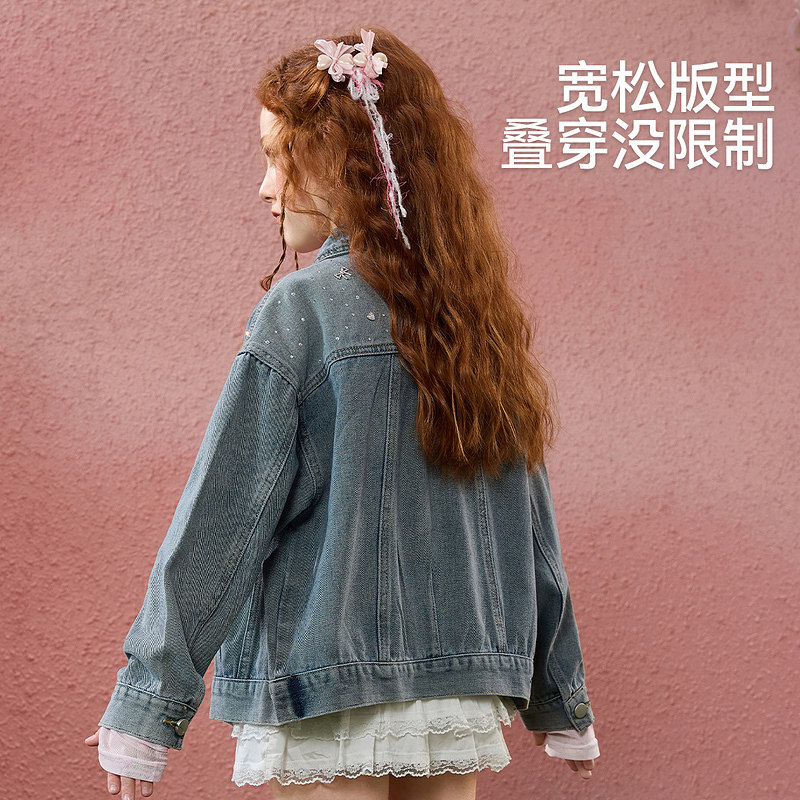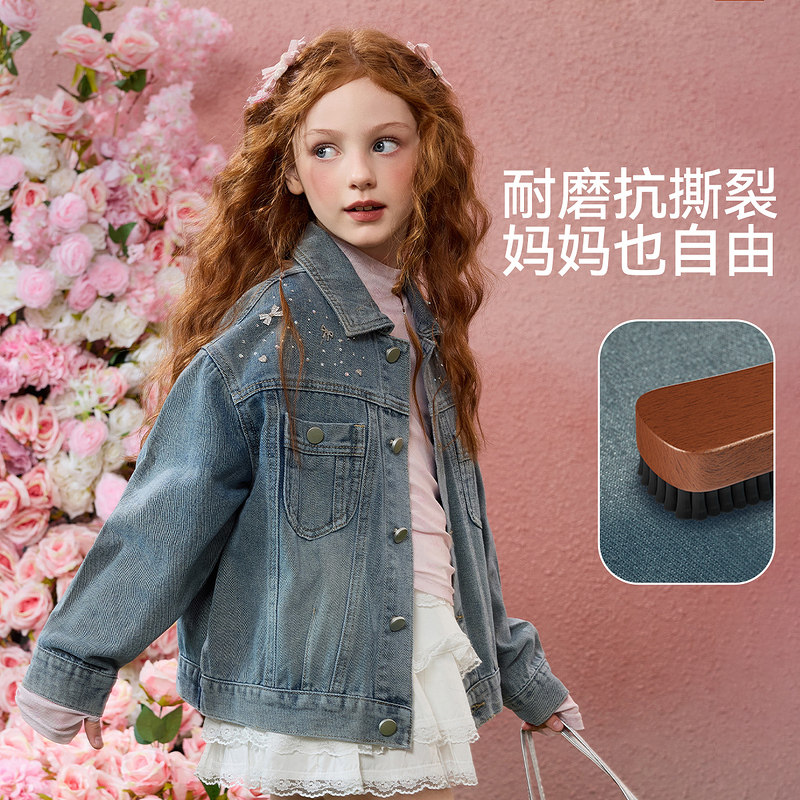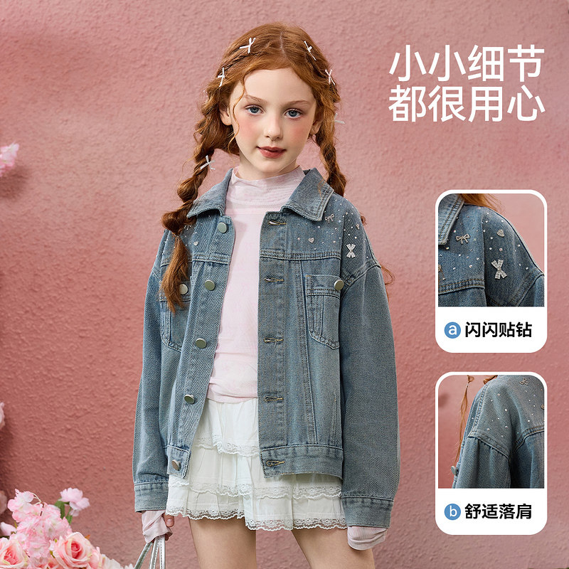 ask 女童春装水洗牛仔外套2026秋季新款舒适蝴蝶结儿童开衫上衣潮