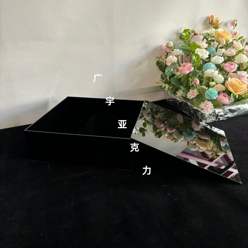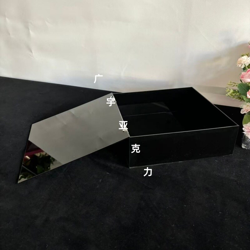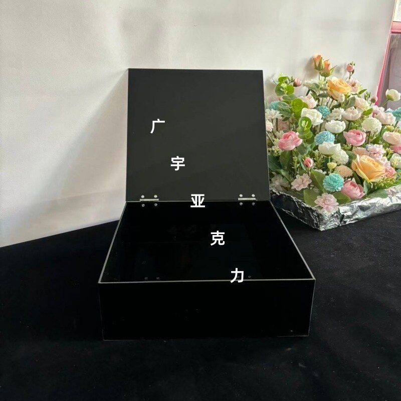 黑色亚克力收纳箱透明收纳盒子礼物亚历克展示盒长方形加厚带盖