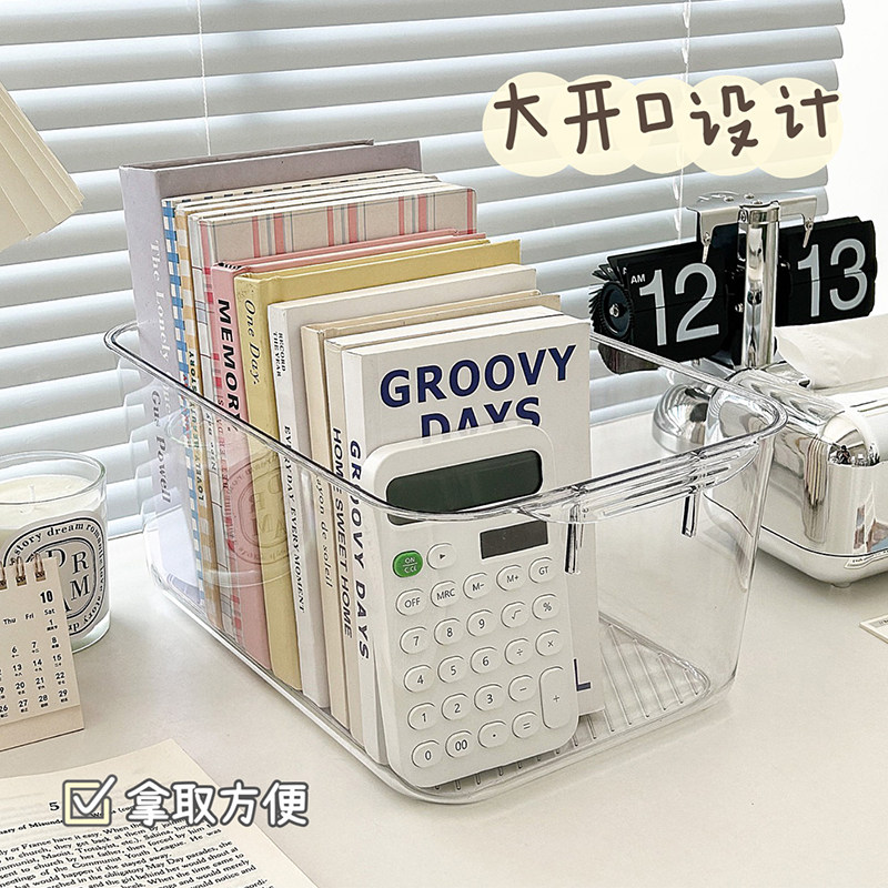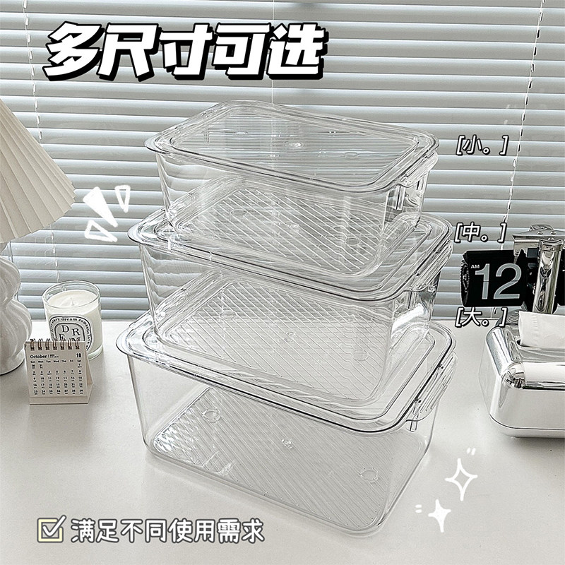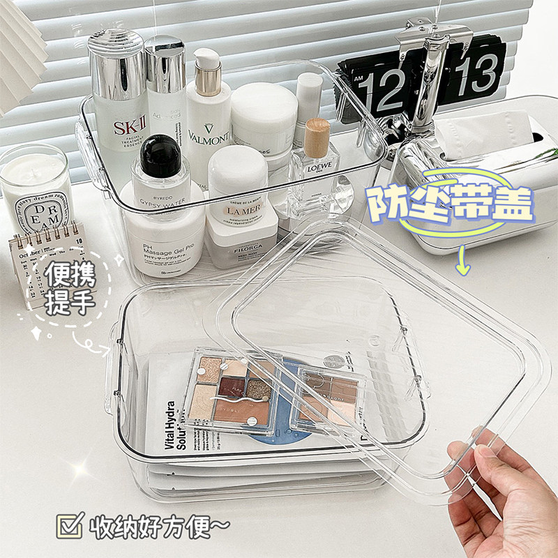 桌面透明收纳盒亚克力带盖化妆收纳箱书桌文具整理盒子杂物置物架