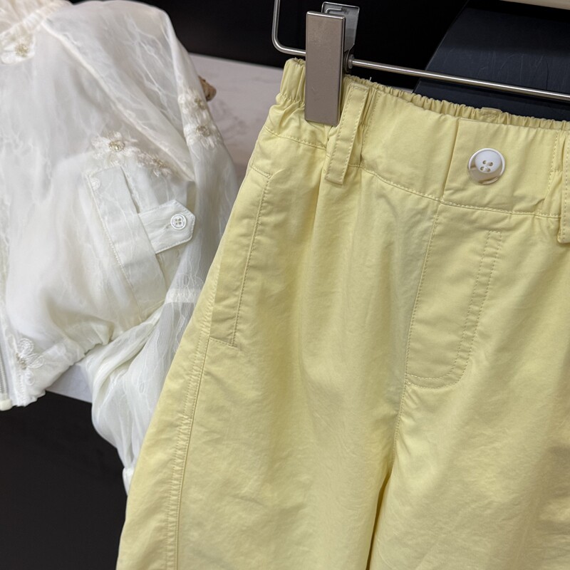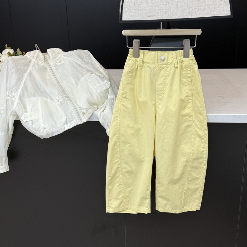 leomama女童春夏纯棉弯刀裤中大童新款韩版儿童宽松黄色休闲裤子