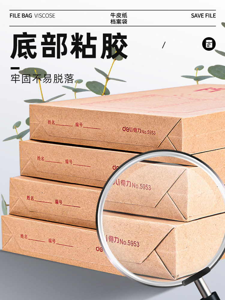 得力牛皮纸档案袋卷宗封皮资料袋收纳学生用成长大号产检加厚a4纸质文件夹批发大容量高级办公用品投标合同袋