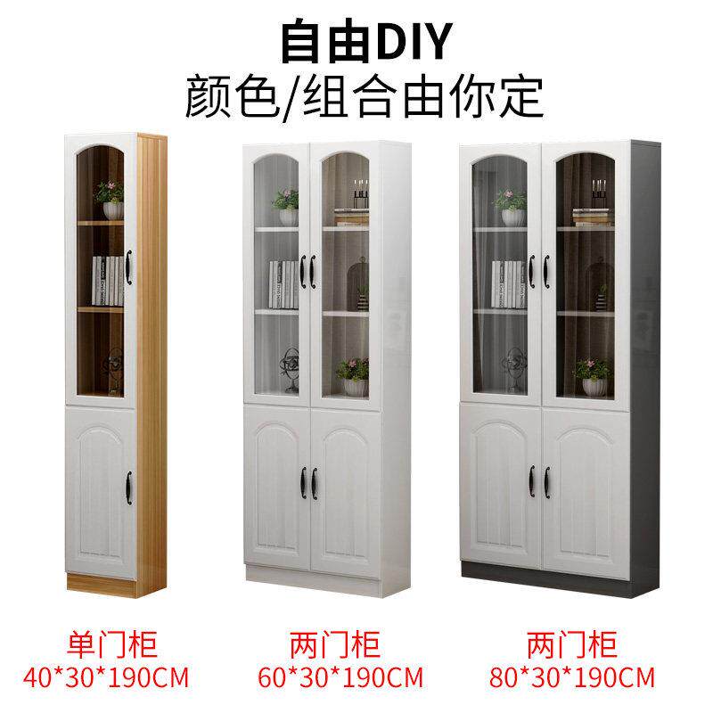 单门书柜置物架客厅夹缝窄柜子带玻璃门一体靠墙简易书架落地定制