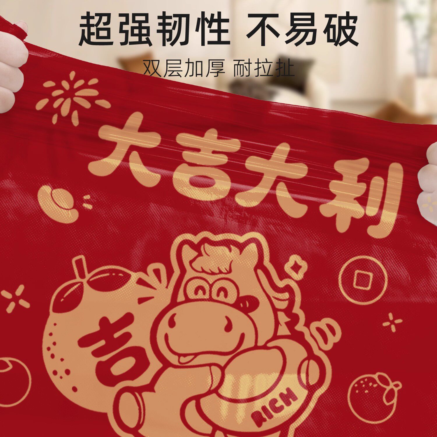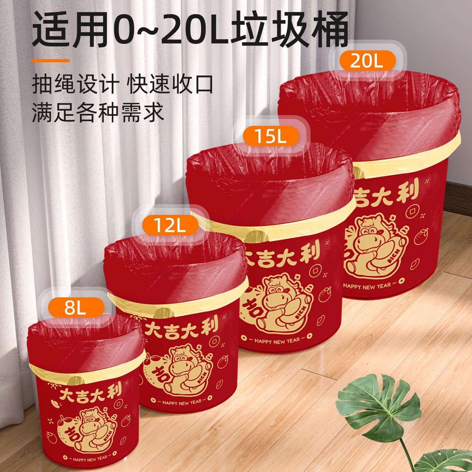 新年马年垃圾袋家用免撕抽绳加厚手提式大号超厚厨房用红色清洁袋
