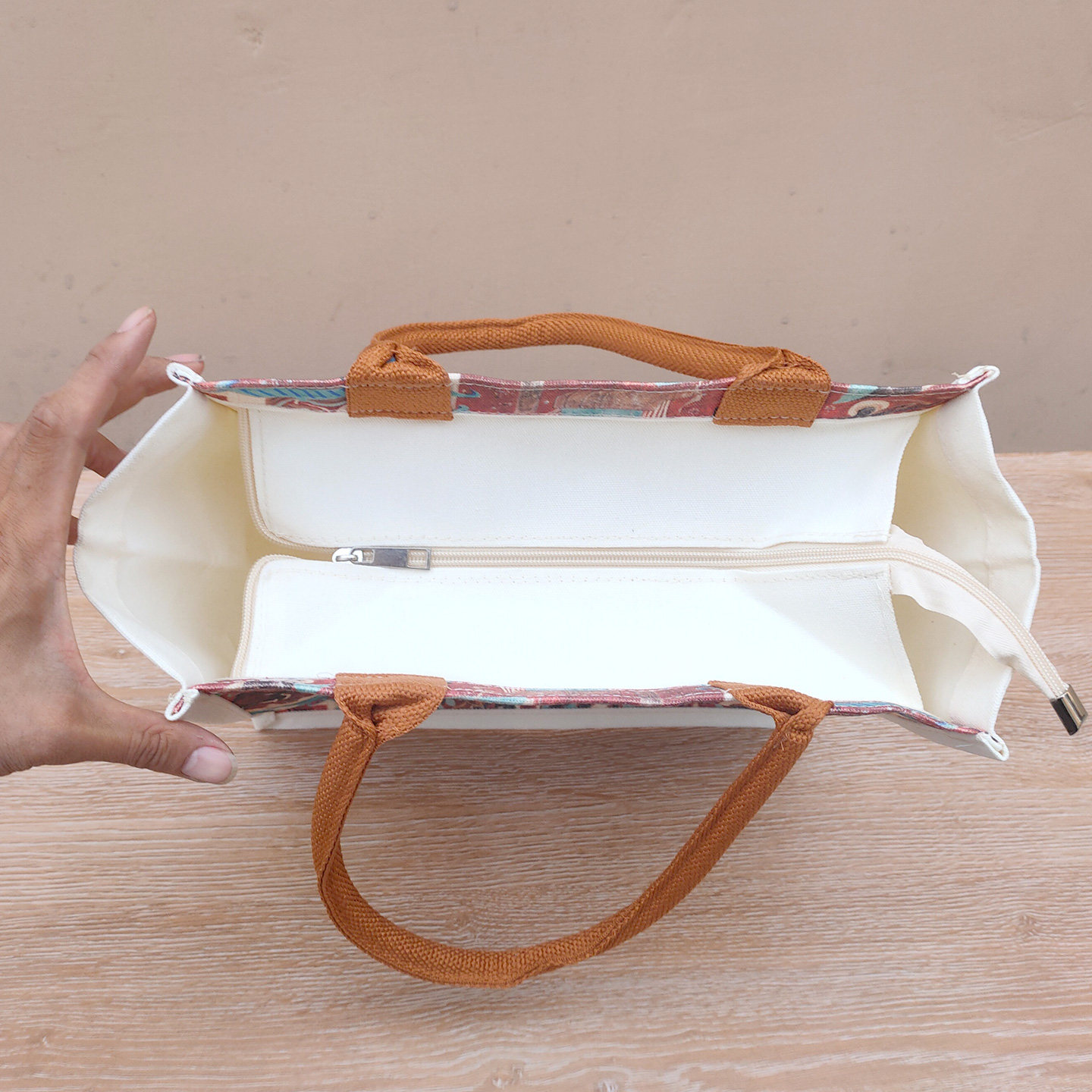 敦煌壁画托特包女大容量硬底立体带拉链通勤上班文创立体帆布袋