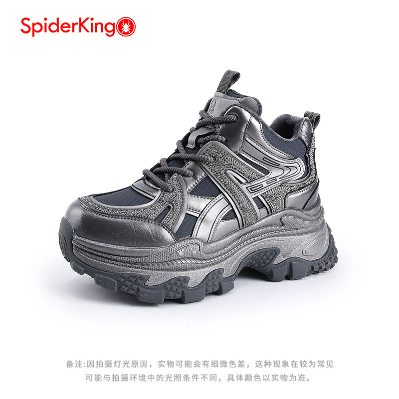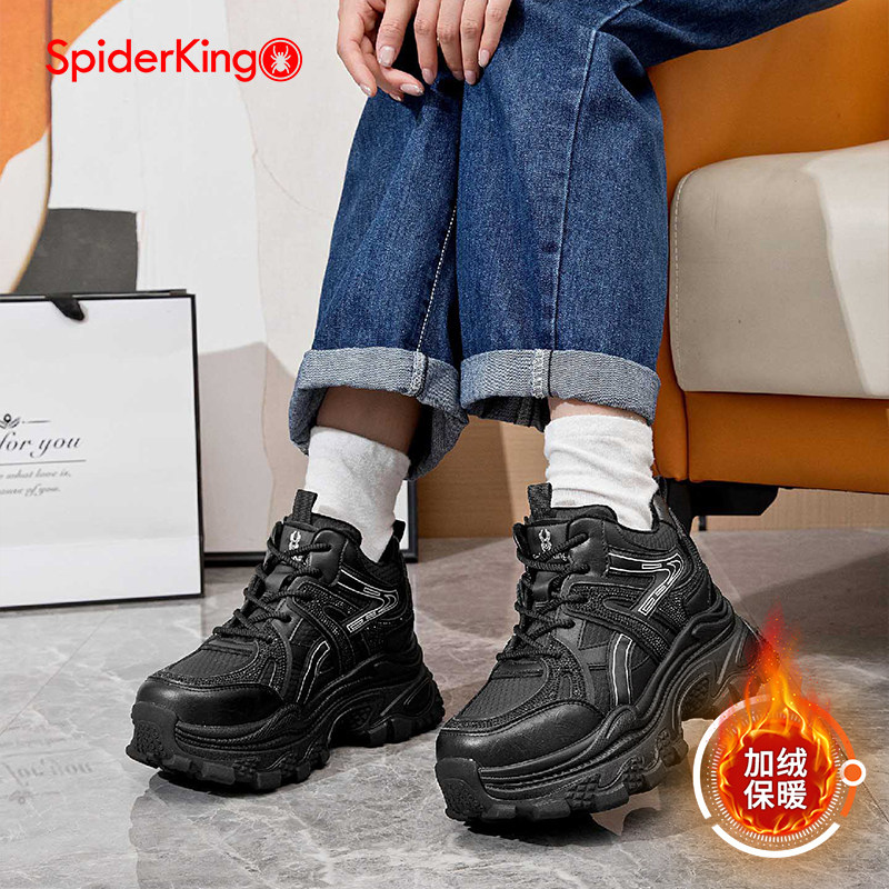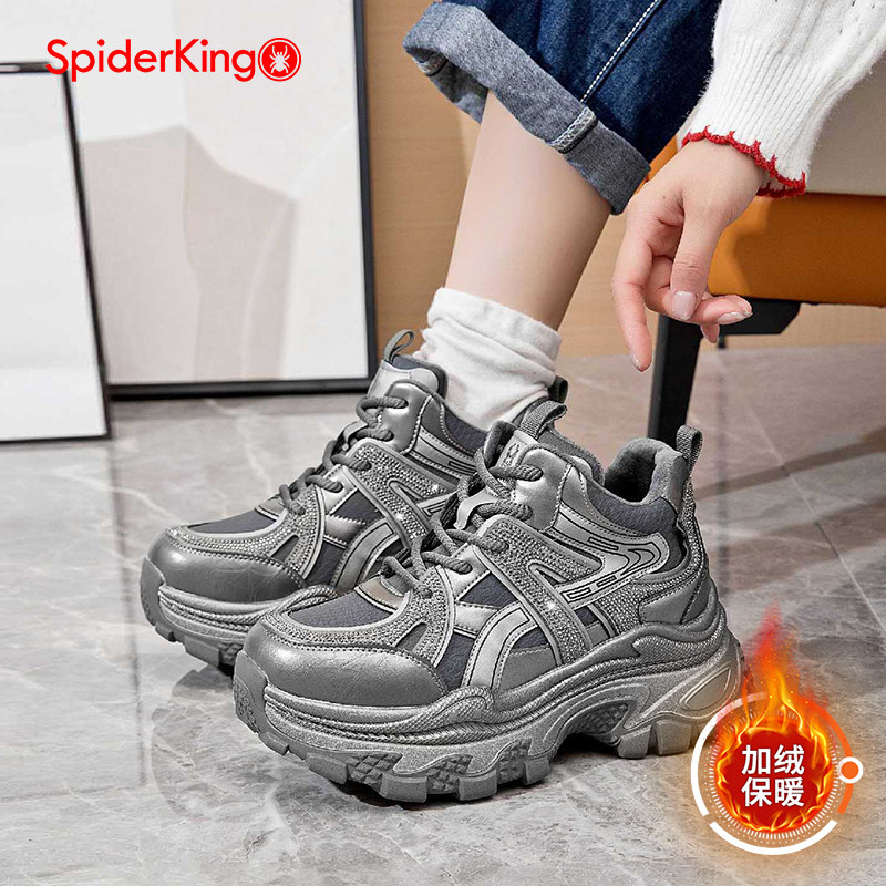 蜘蛛王女鞋2025冬季加绒保暖复古厚底老爹鞋增高舒适运动休闲鞋