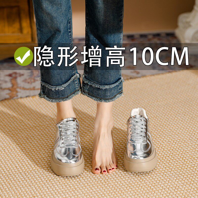 潮牌真皮德训鞋女2026春季新款厚底小白鞋女内增高松糕厚底鞋四季