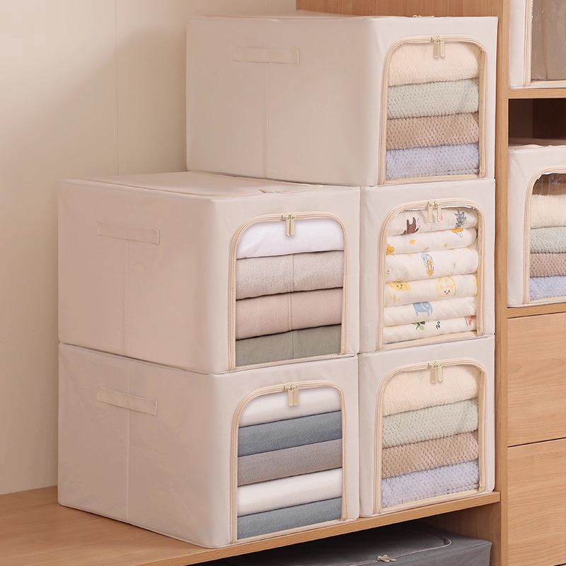 衣服收纳箱布艺四件套衣物整理盒储物筐衣柜窄长款专用牛津布百纳