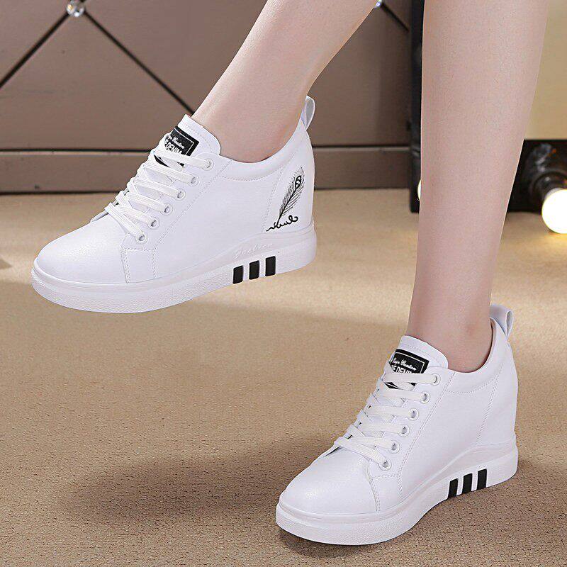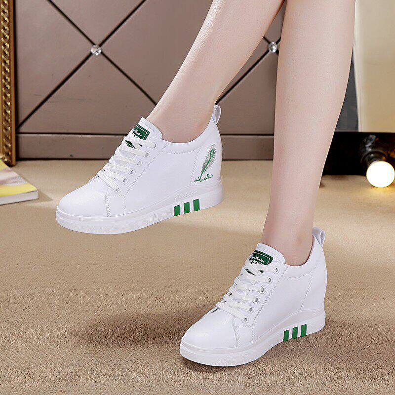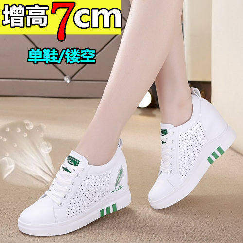 透气皮鞋内增高休闲鞋小个子配裙子旅游鞋2025新款秋季真皮小白鞋