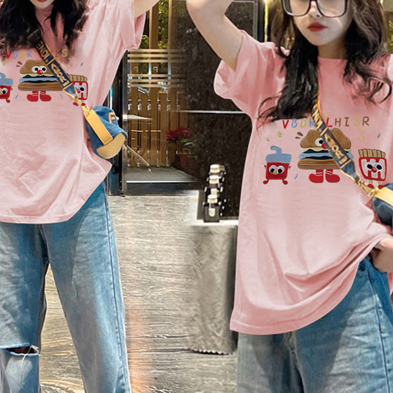 311线报网描述:多巴胺纯棉短袖t恤粉色上衣