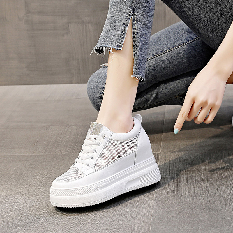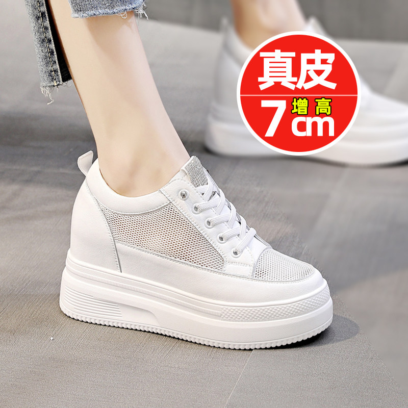 春季新款真皮内增高厚底小白鞋女百搭运动鞋7公分皮面透气女鞋潮