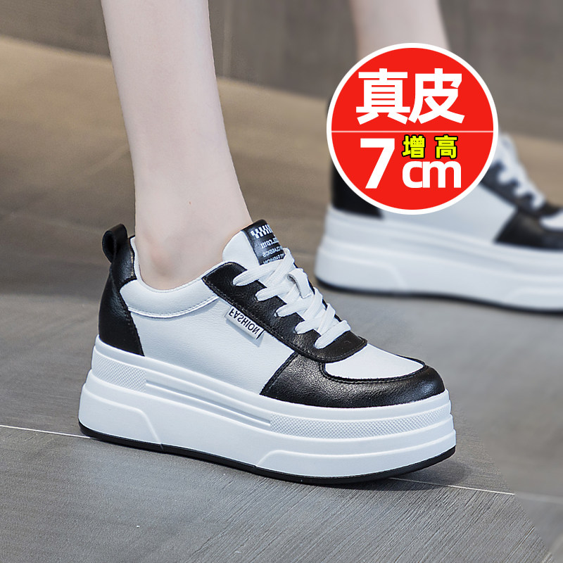 春款真皮内增高厚底小白鞋女韩版7公分炸街百搭休闲鞋轻便女鞋潮