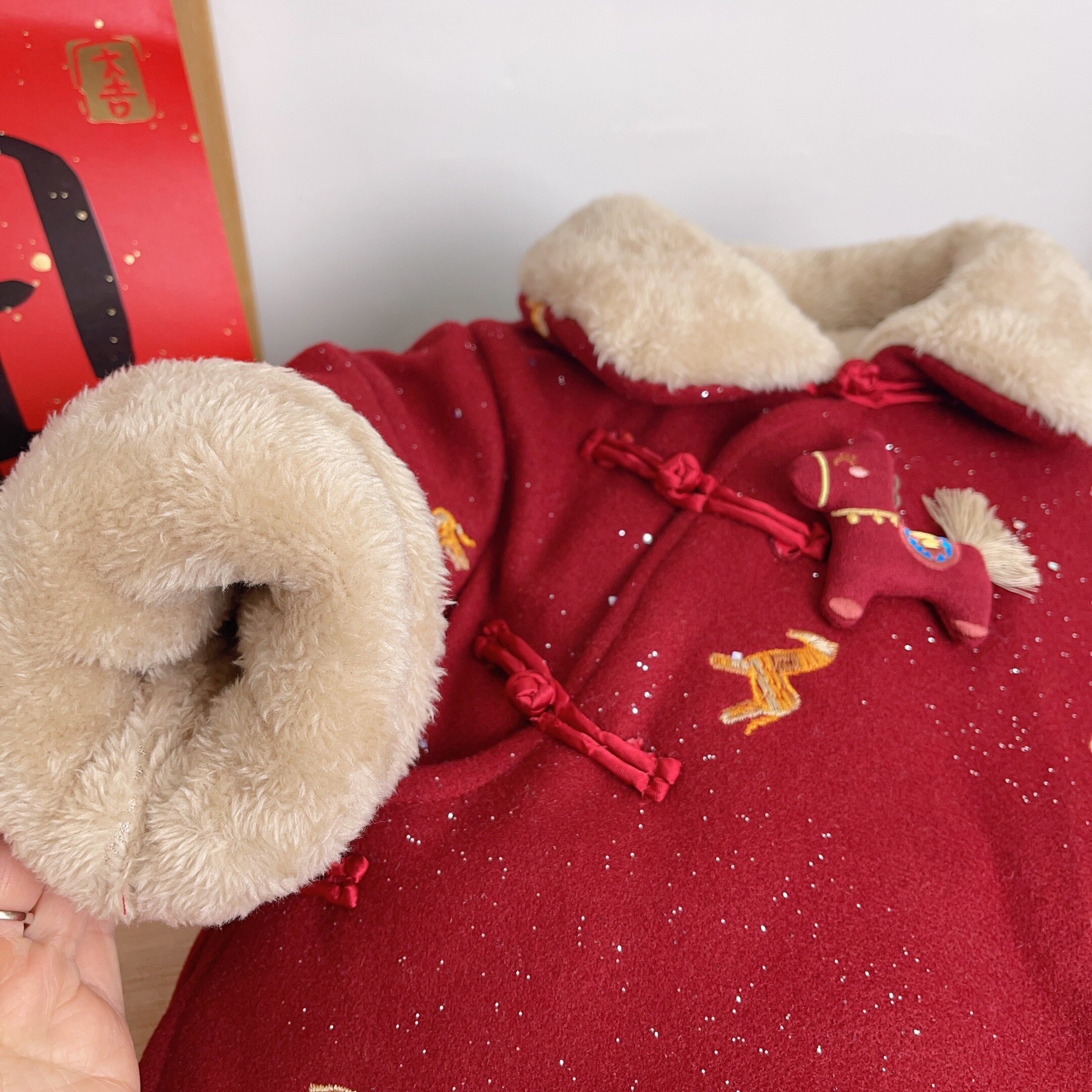女童套装拜年服2026新款女童洋气时髦棉服冬装新中式翻领夹棉潮