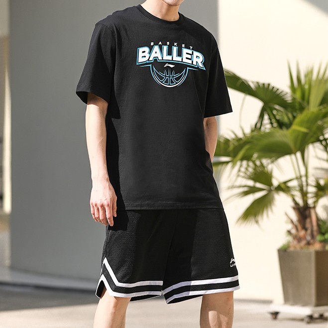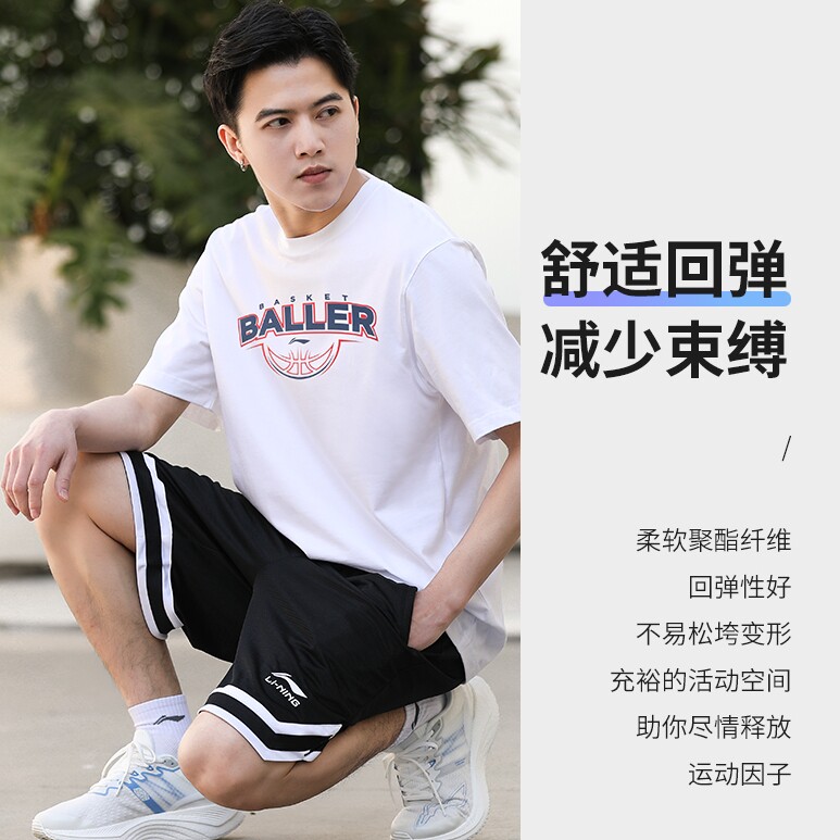 311线报网描述:李宁运动套装男速干短袖t恤篮球服短裤跑步