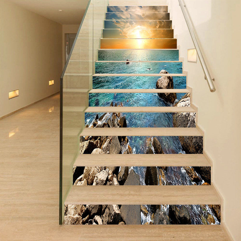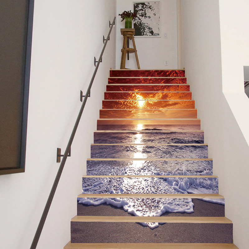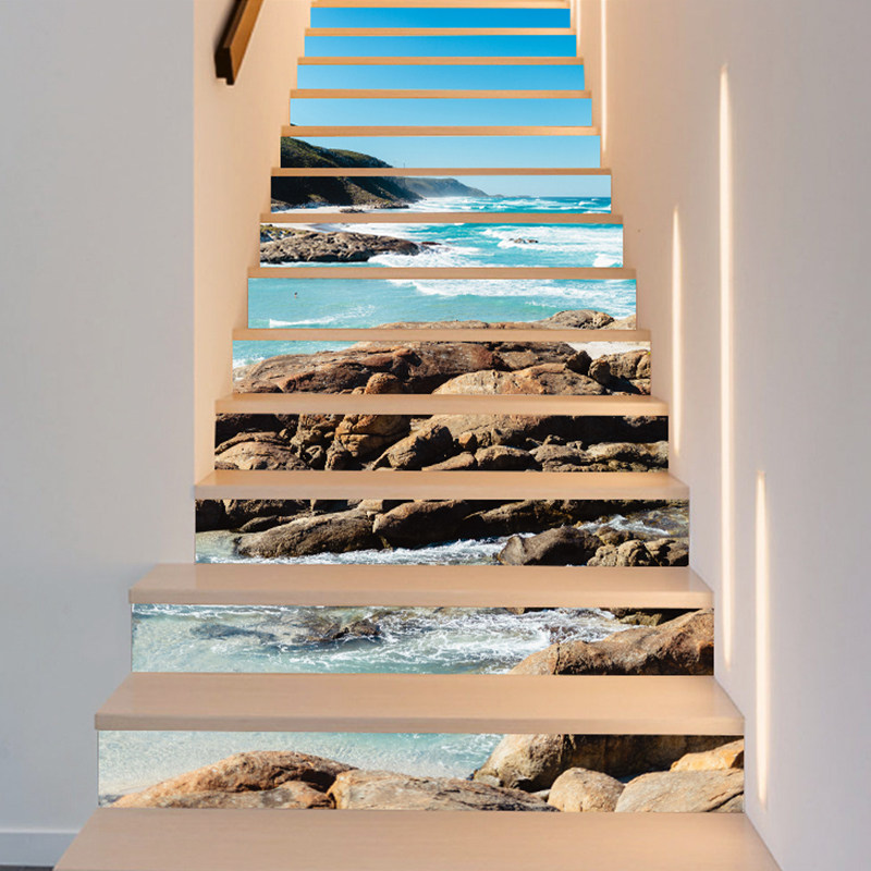 美化装饰民宿旅馆墙面壁纸画翻新改造旧楼梯台阶广告宣传海报贴纸