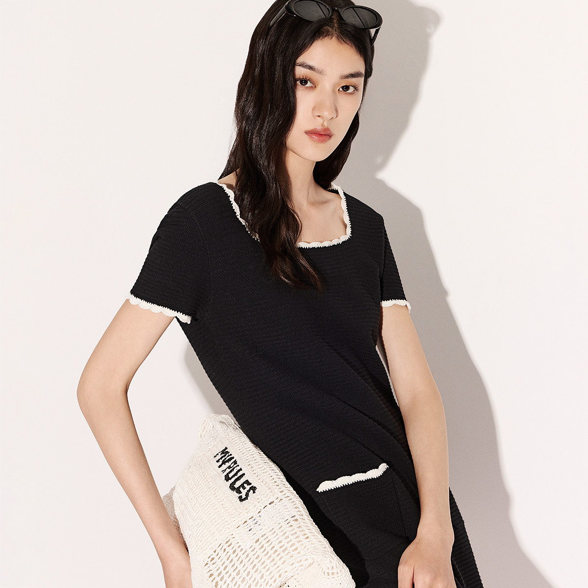 311线报网描述:撞色波浪花边,显瘦方领