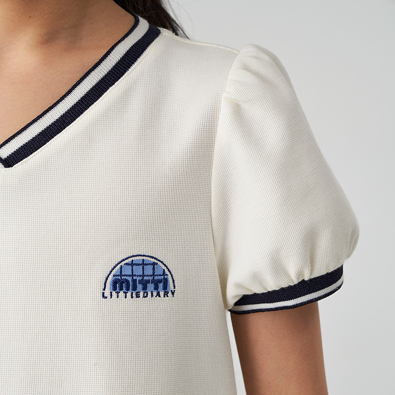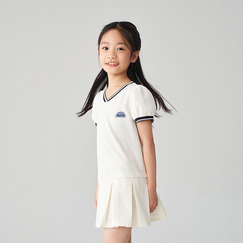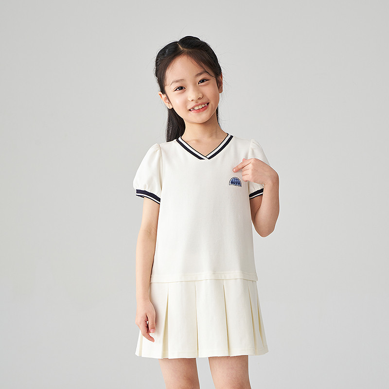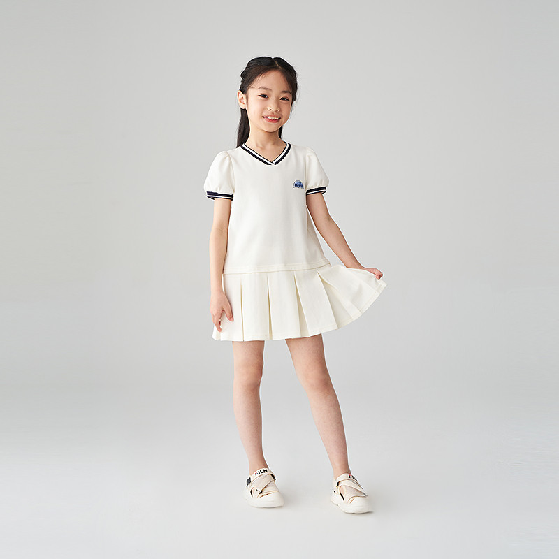 Mitti2025夏季新款女童连衣裙钻石棉针织白色V领百褶网球风儿童裙