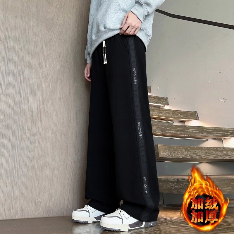 秋冬装加绒加厚裤子男孩初中学生直筒休闲长裤青少年大童帅气卫裤