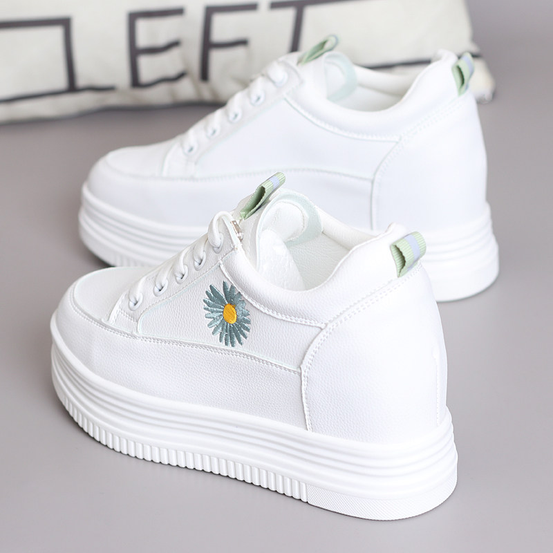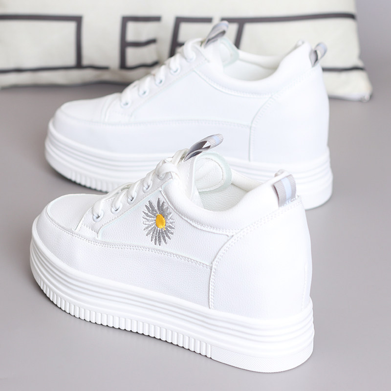 韩版百搭厚底内增高8cm小雏菊小白鞋女春秋新款网红爆款街拍女鞋