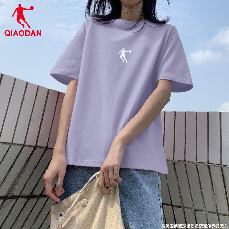 乔丹纯棉半袖女士宽松休闲显瘦大码t恤夏季正品简约圆领上衣短袖