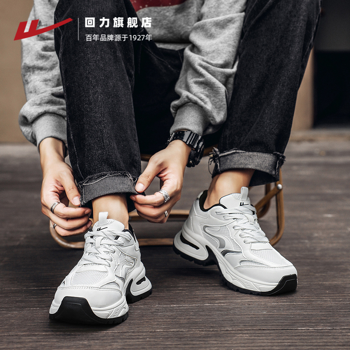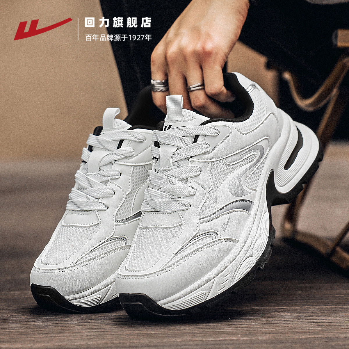 回力男鞋厚底老爹鞋2025秋季新款网面透气小白鞋男士休闲运动鞋子