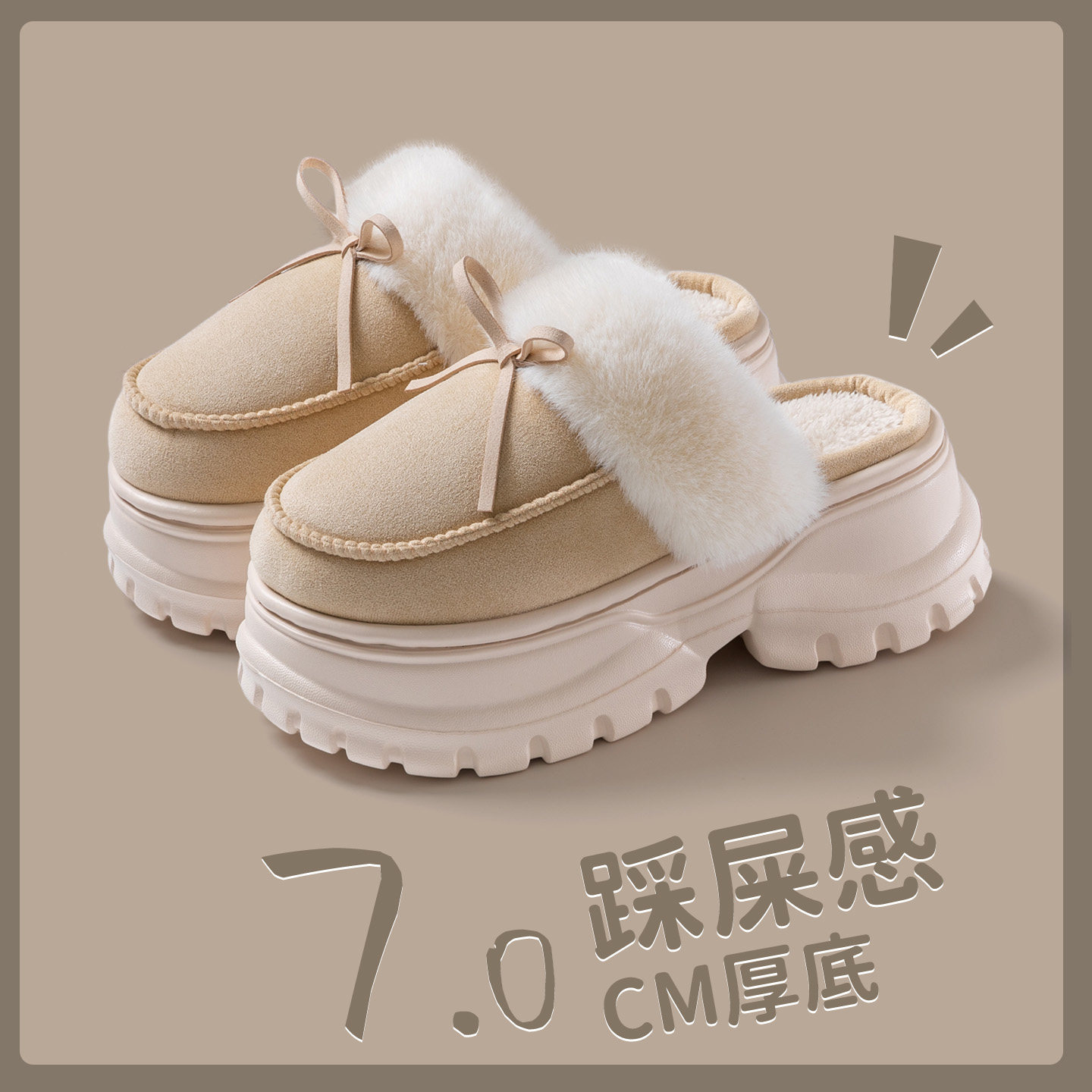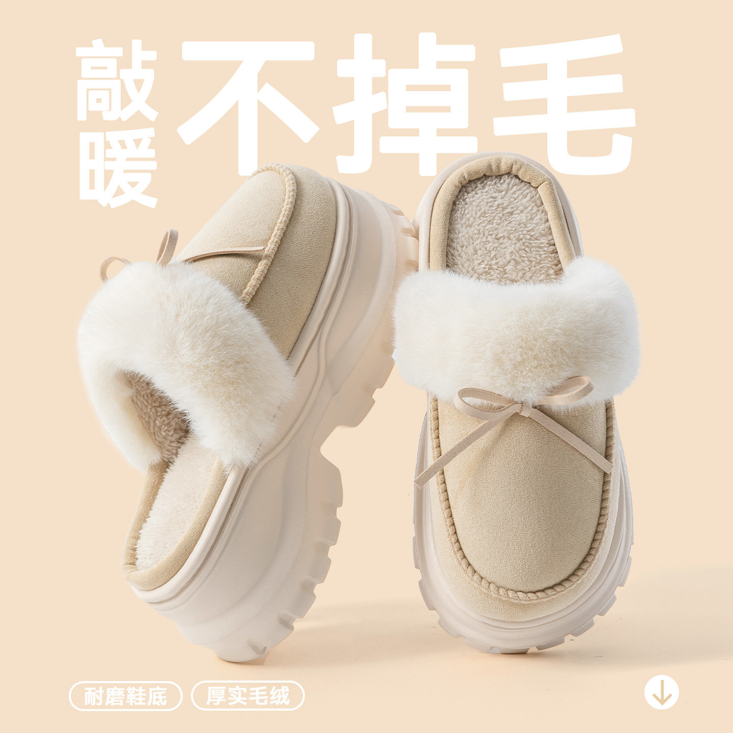 厚底增高棉拖鞋女款秋冬季居家外穿2025新款防滑加绒保暖毛绒棉鞋