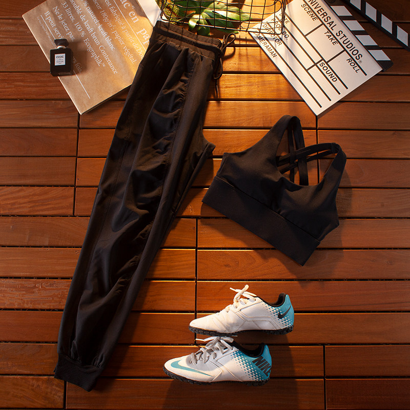 网红运动套装女士速干文胸宽松哈伦裤健身房跑步训练时尚瑜伽服簿