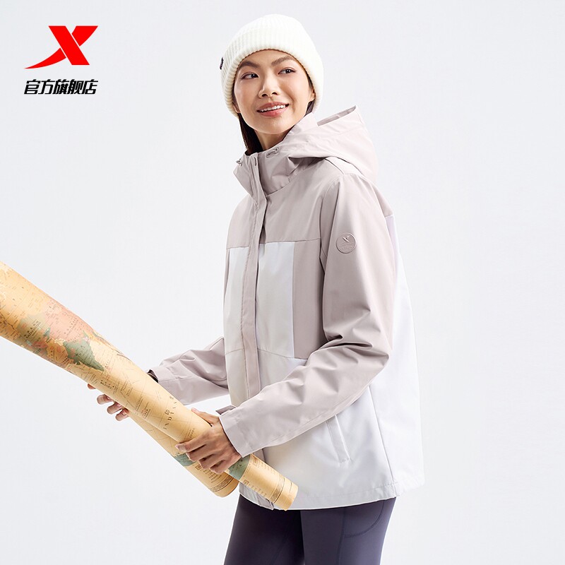 特步迎寒跃春女款两件套新款春季加绒休闲外套冲锋衣官方旗舰正品