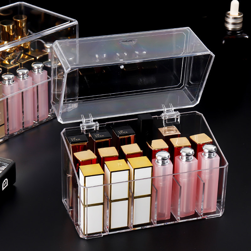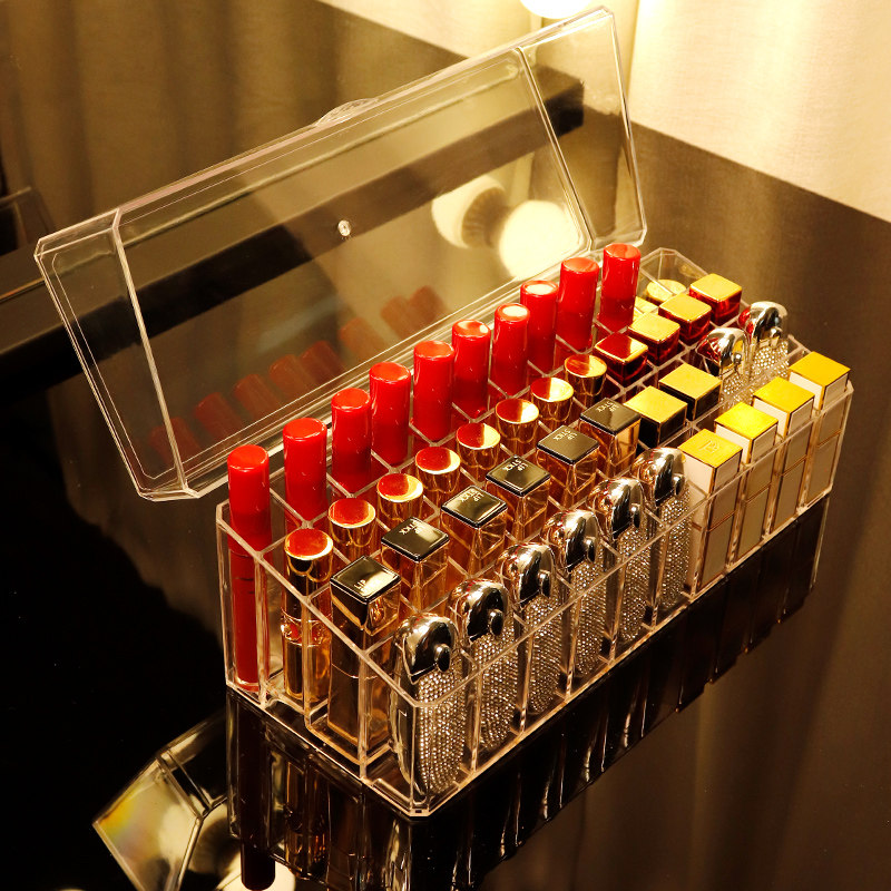 网红口红收纳盒带盖防尘桌面唇釉不倒多格化妆品口红架整理盒透明
