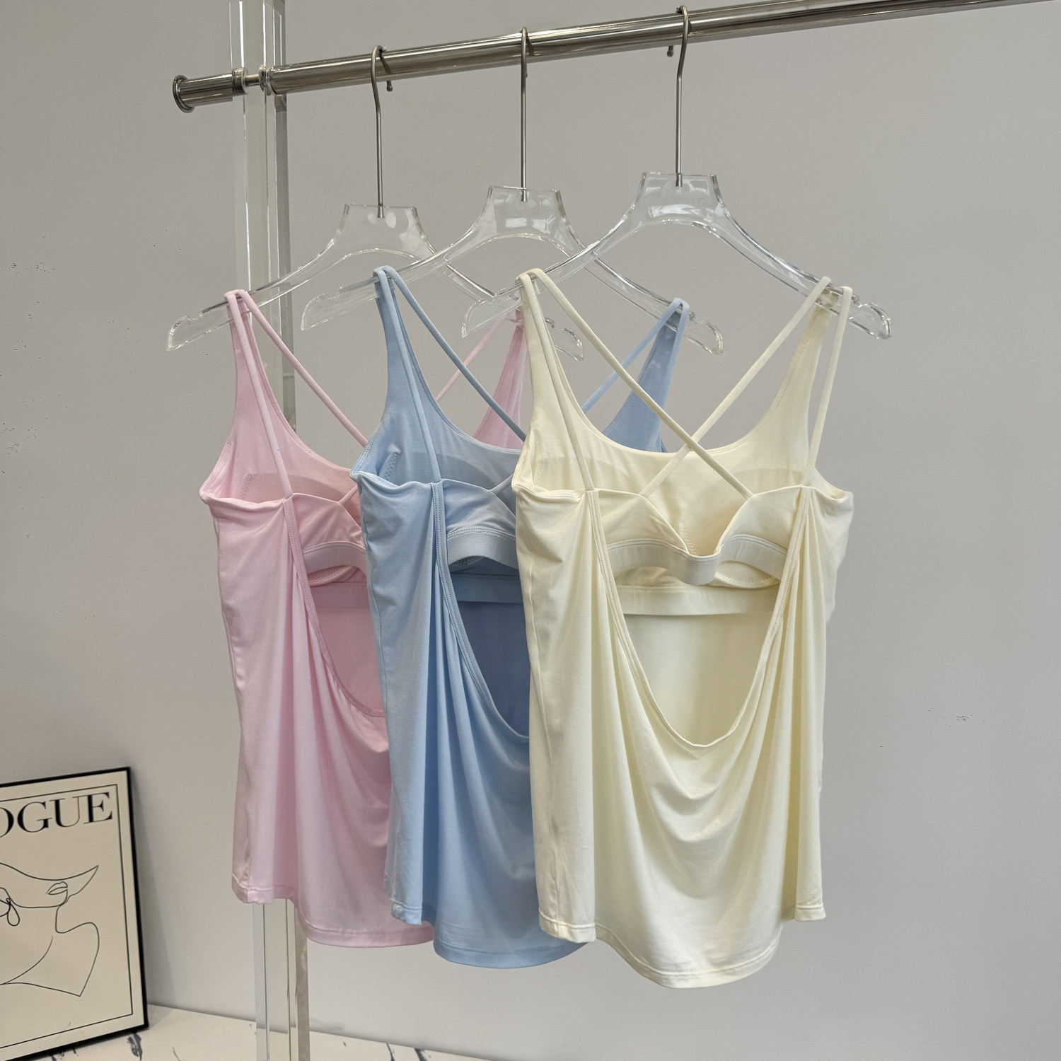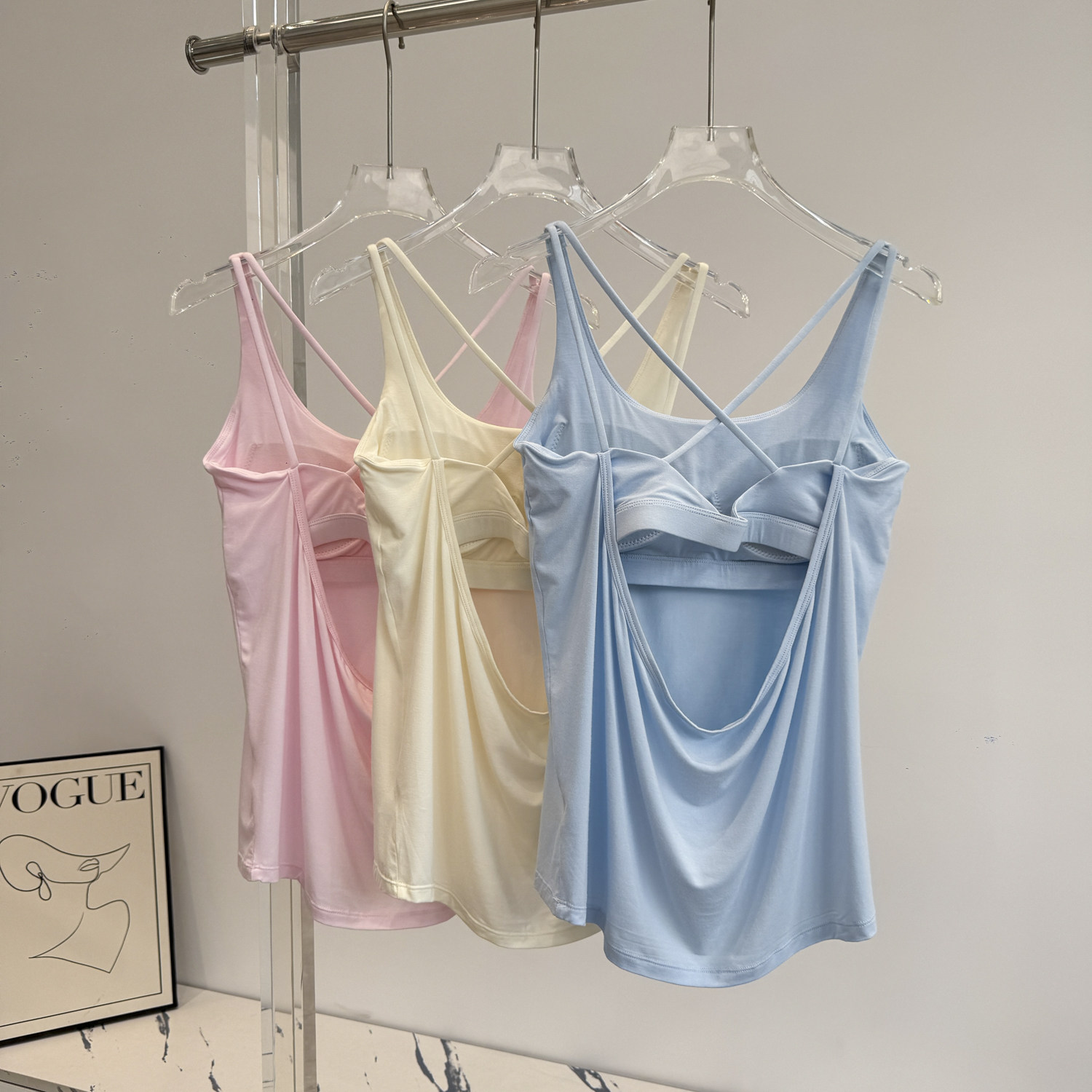 运动背心女带胸垫假两件瑜伽服上衣宽松健身跑步上衣美背瑜伽背心