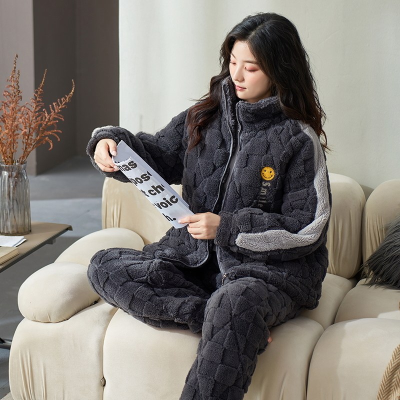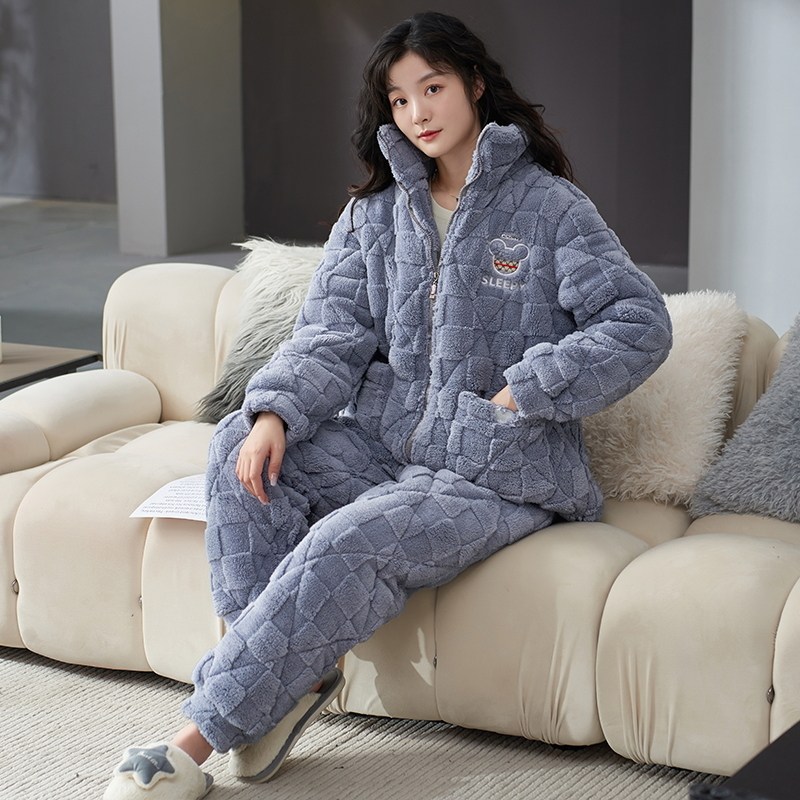 高个子加长版女款加厚珊瑚绒夹棉睡衣套装加大码棉服两件套装棉袄