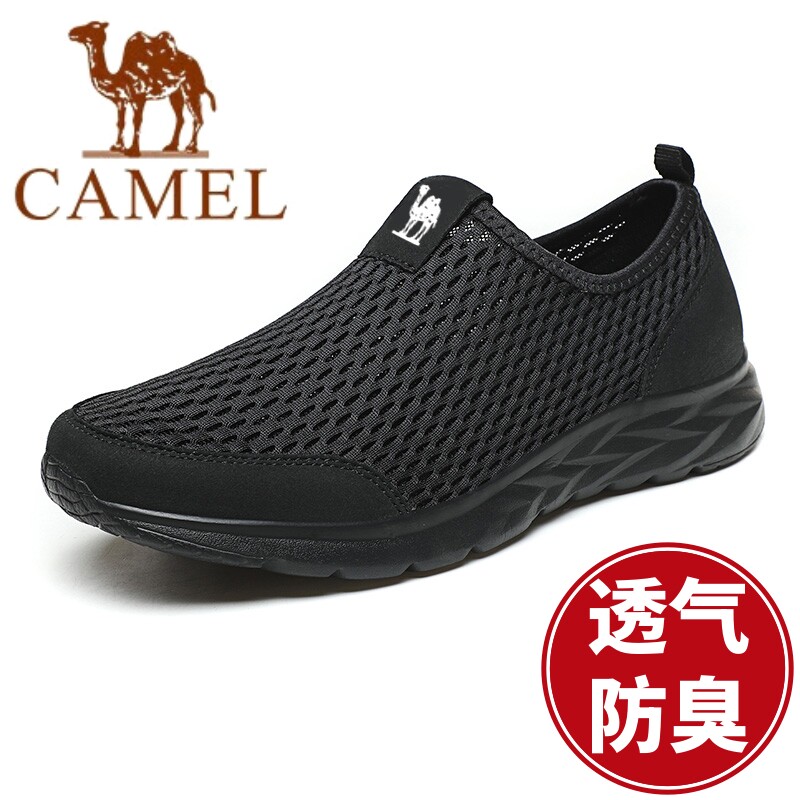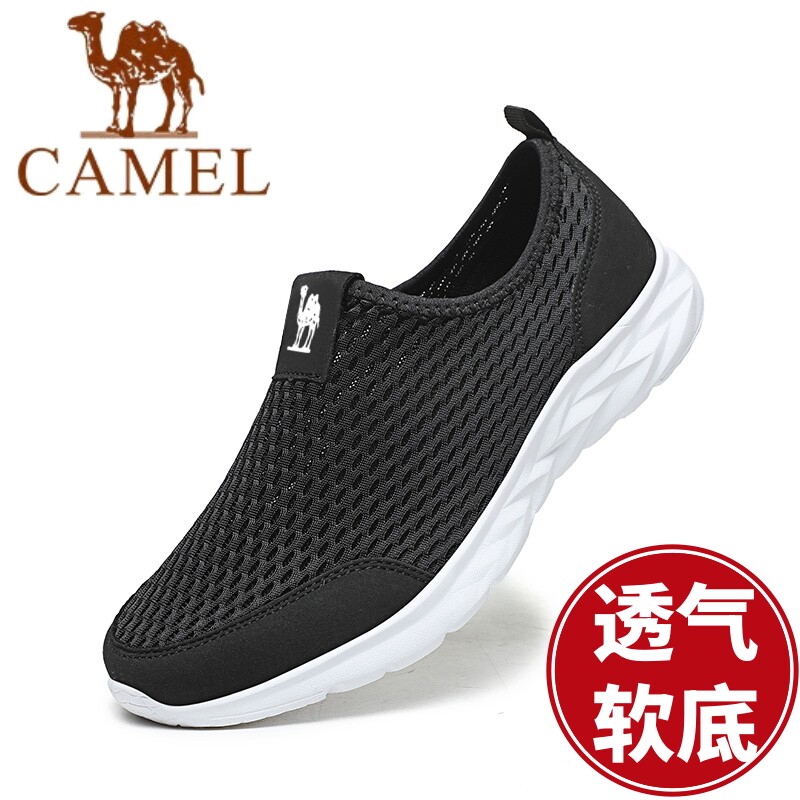 特价骆驼男鞋一脚蹬网鞋软底夏季网面透气防臭套脚轻便防滑休闲鞋