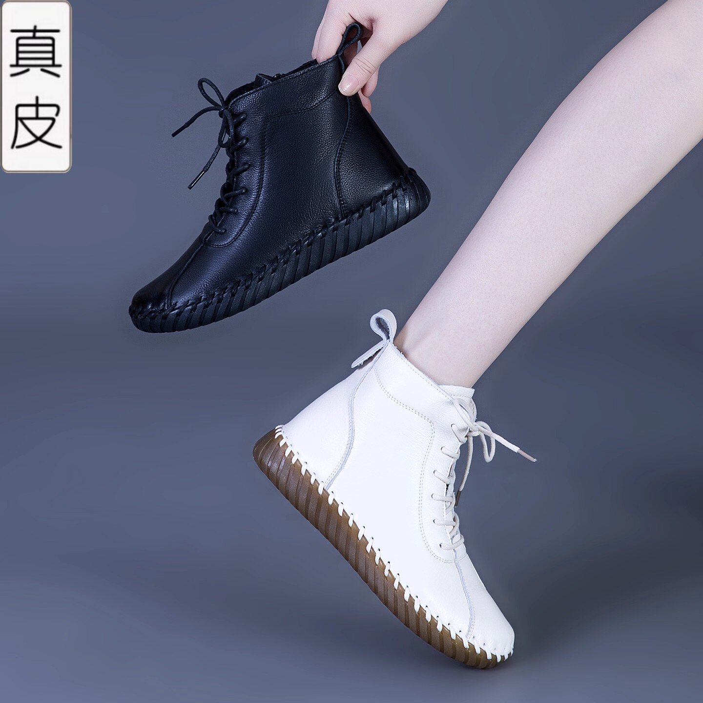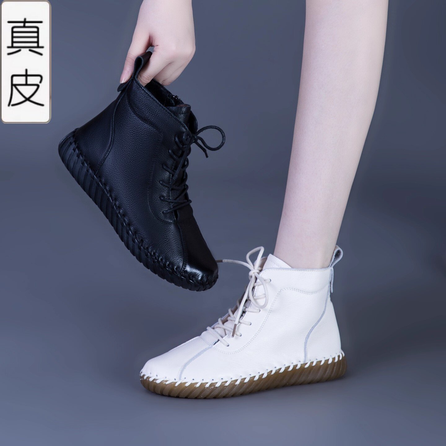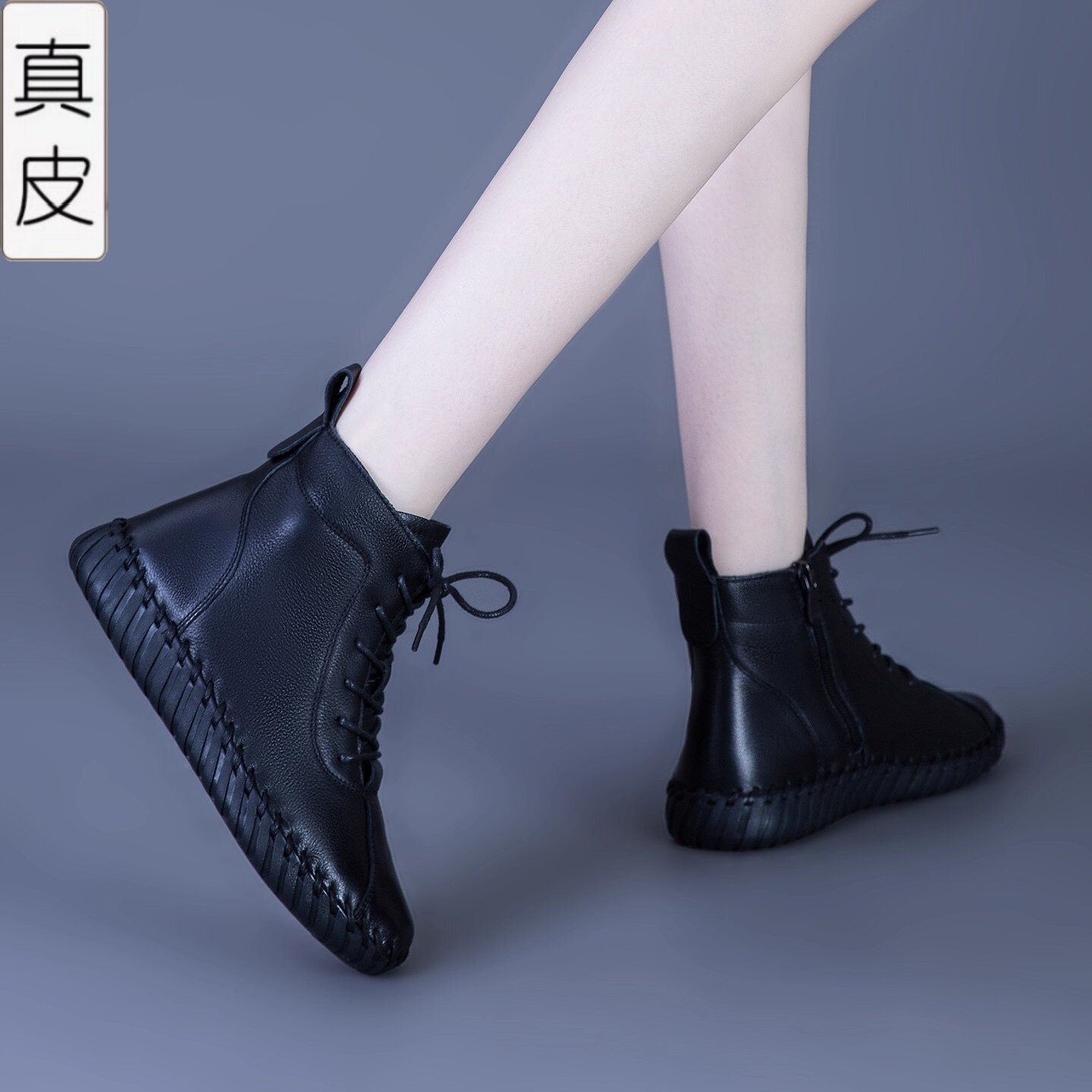 真皮短靴女款靴子2026新款春秋休闲马丁靴软底女士黑色牛皮妈妈鞋