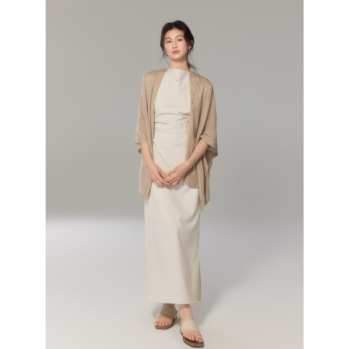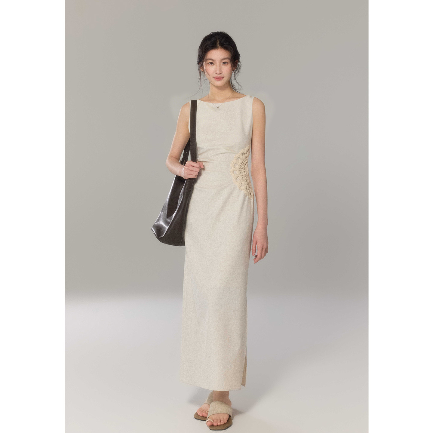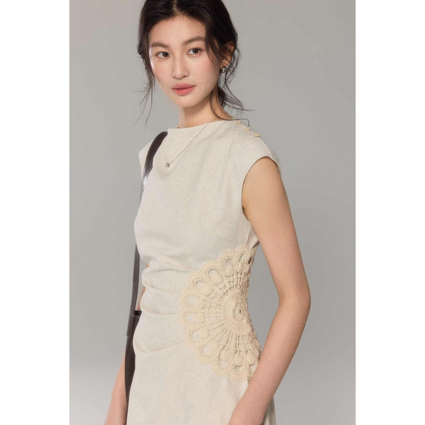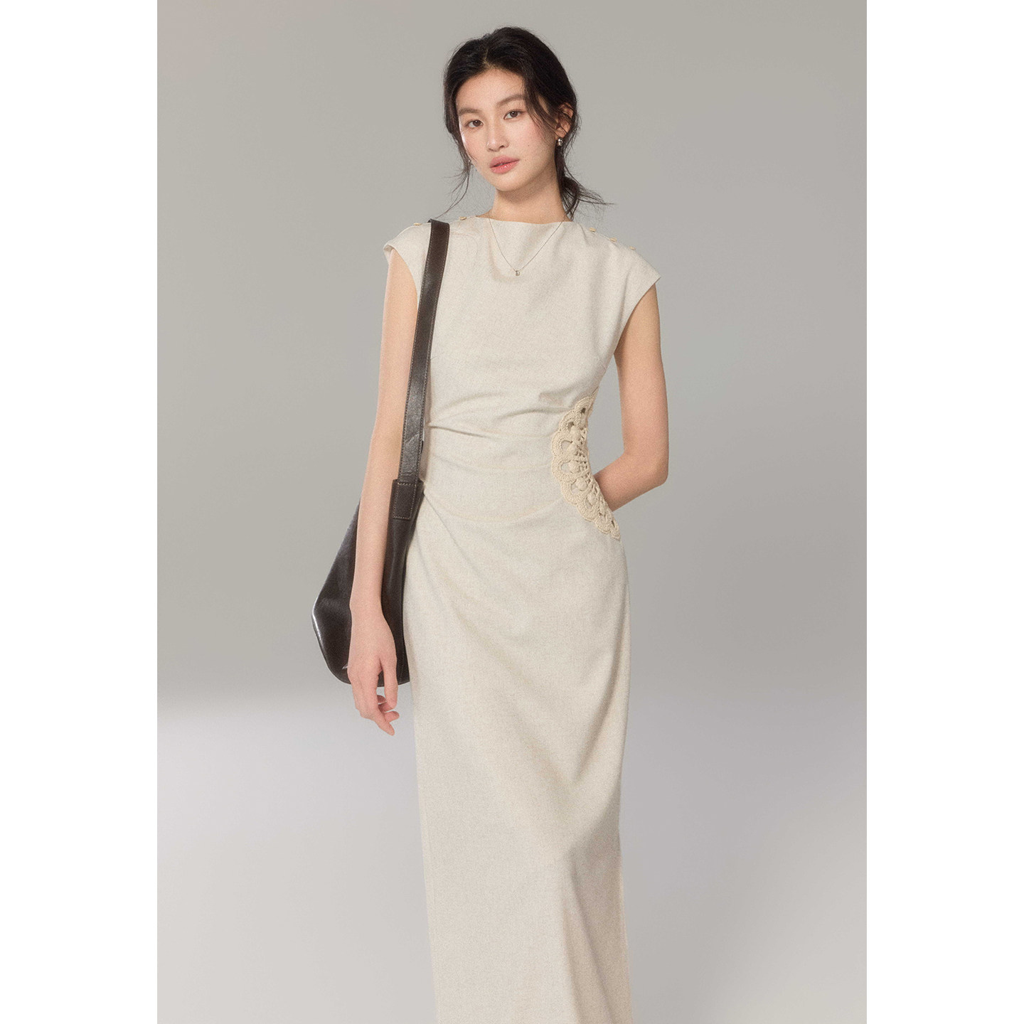 贰羊设计【青山映】小飞袖高级感连衣裙女通勤气质拼接手工钩织花